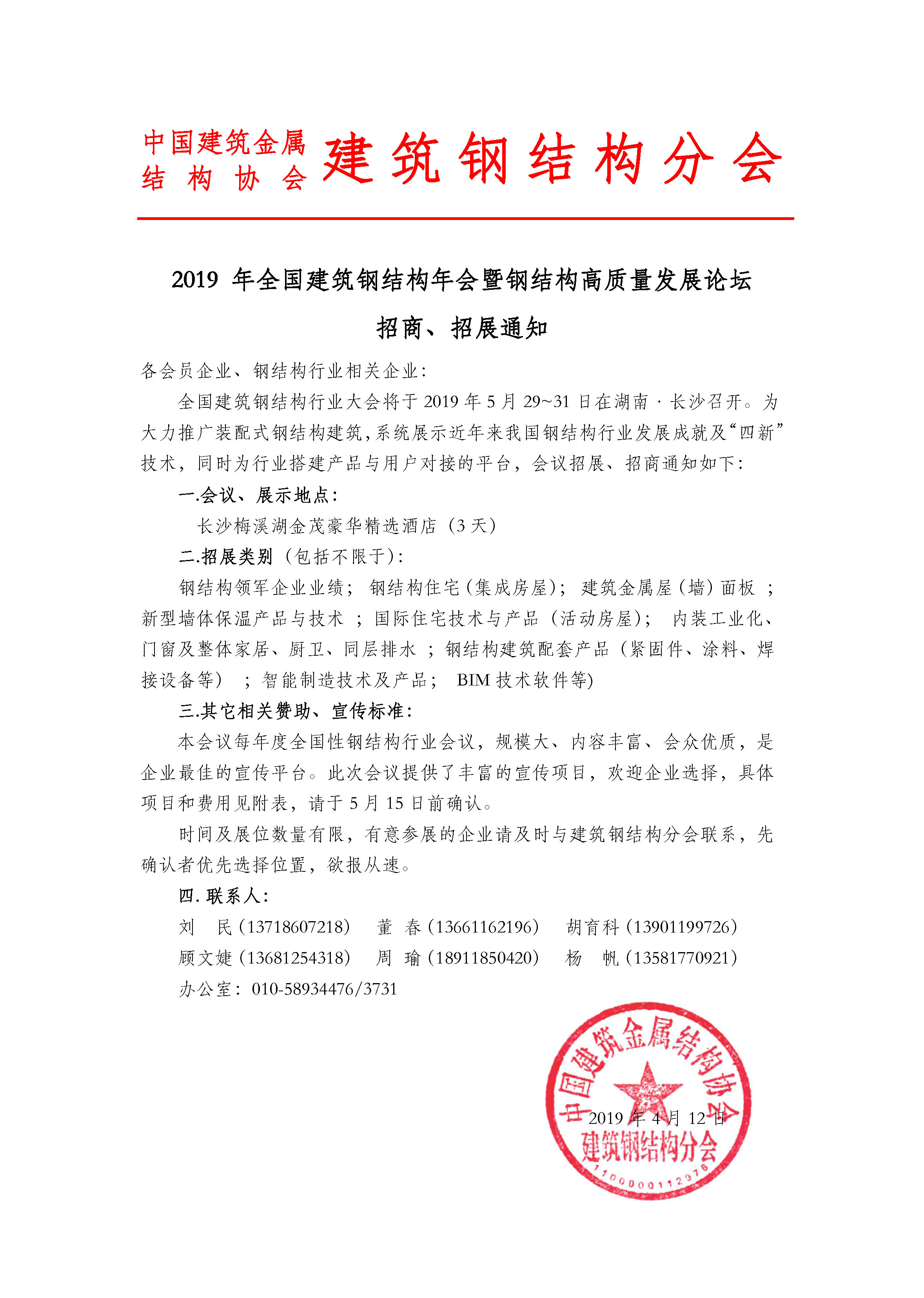 2019年全国建筑钢结构行业年会暨钢结构高质量发展论坛招商招展通知