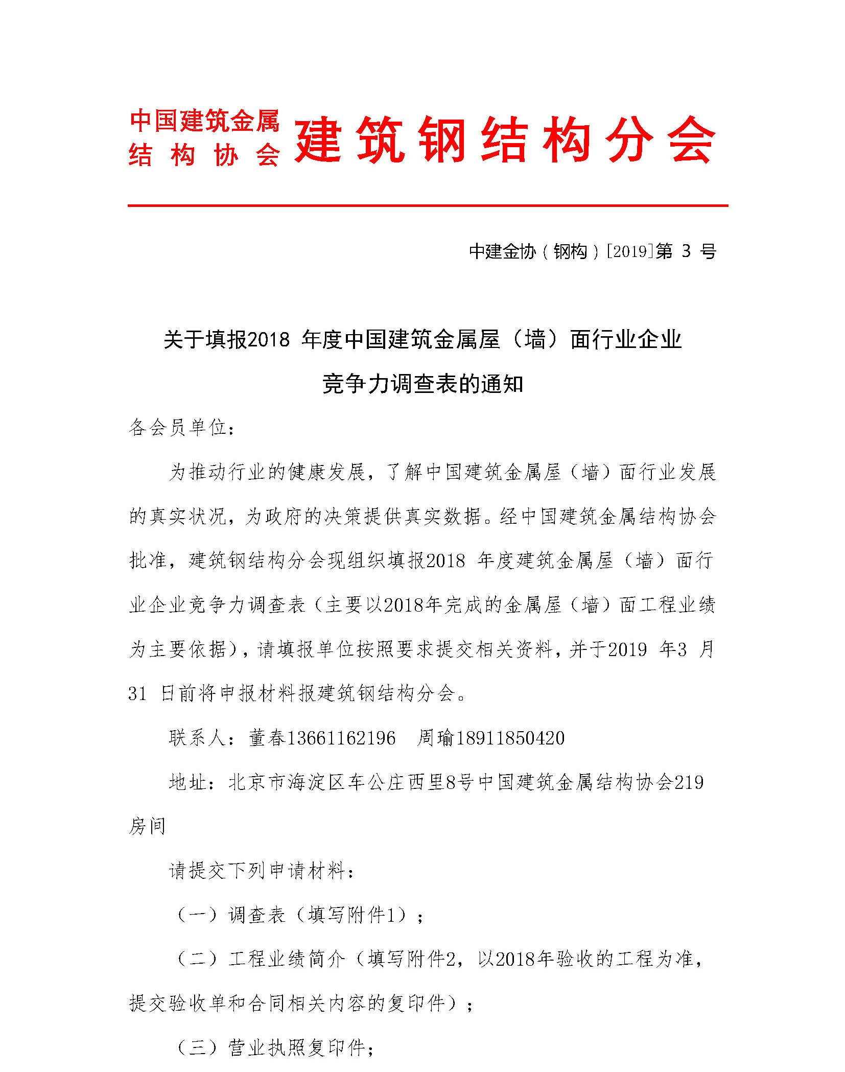 关于填报2018 年度中国建筑金属屋(墙)面行业企业 竞争力调查表的通知
