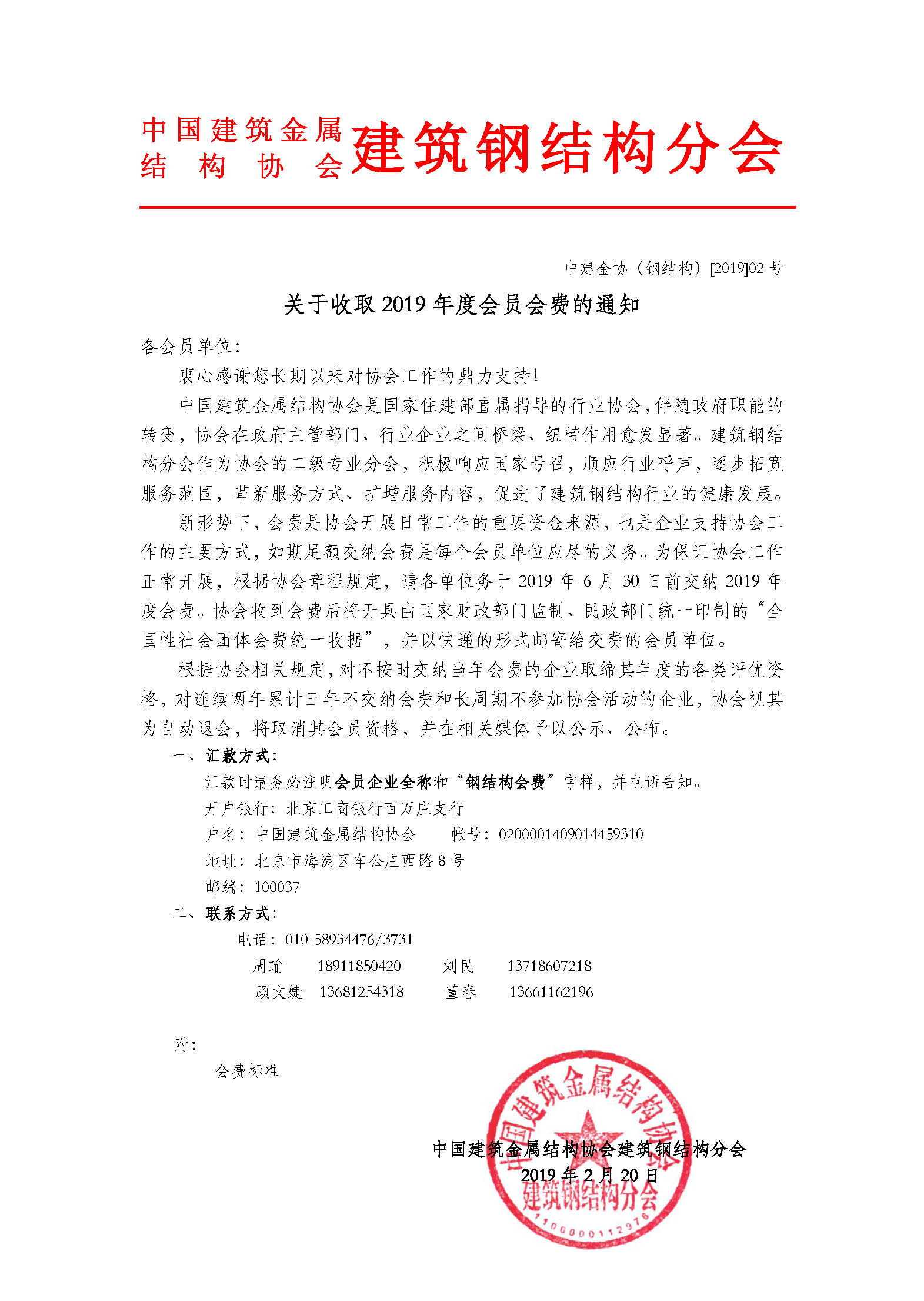 关于收取2019年年度会费通知