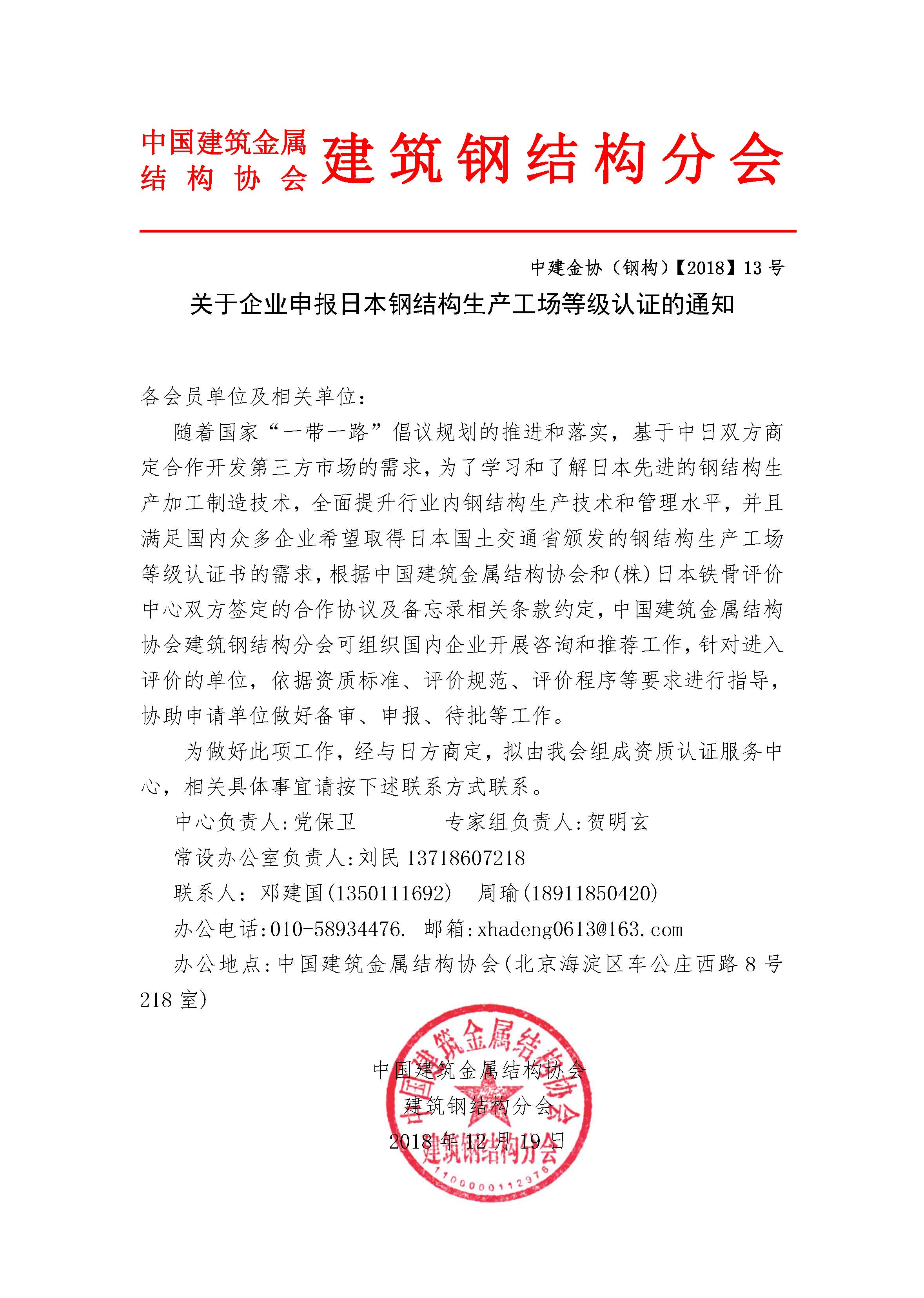 关于企业申报日本钢结构生产工场等级认证的通知