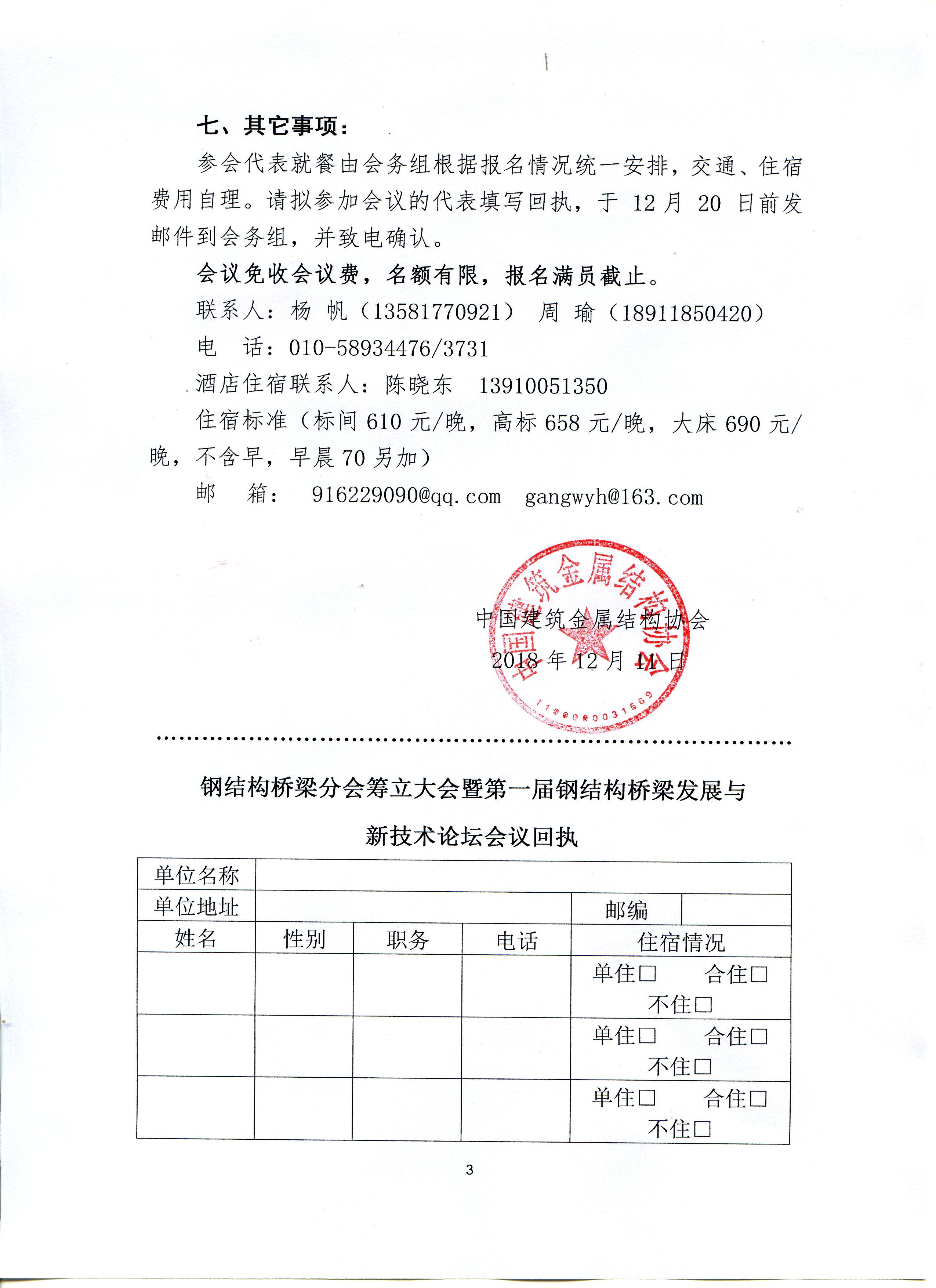 钢结构桥梁分会筹立大会暨第一届钢结构桥梁发展与新技术论坛会议回执