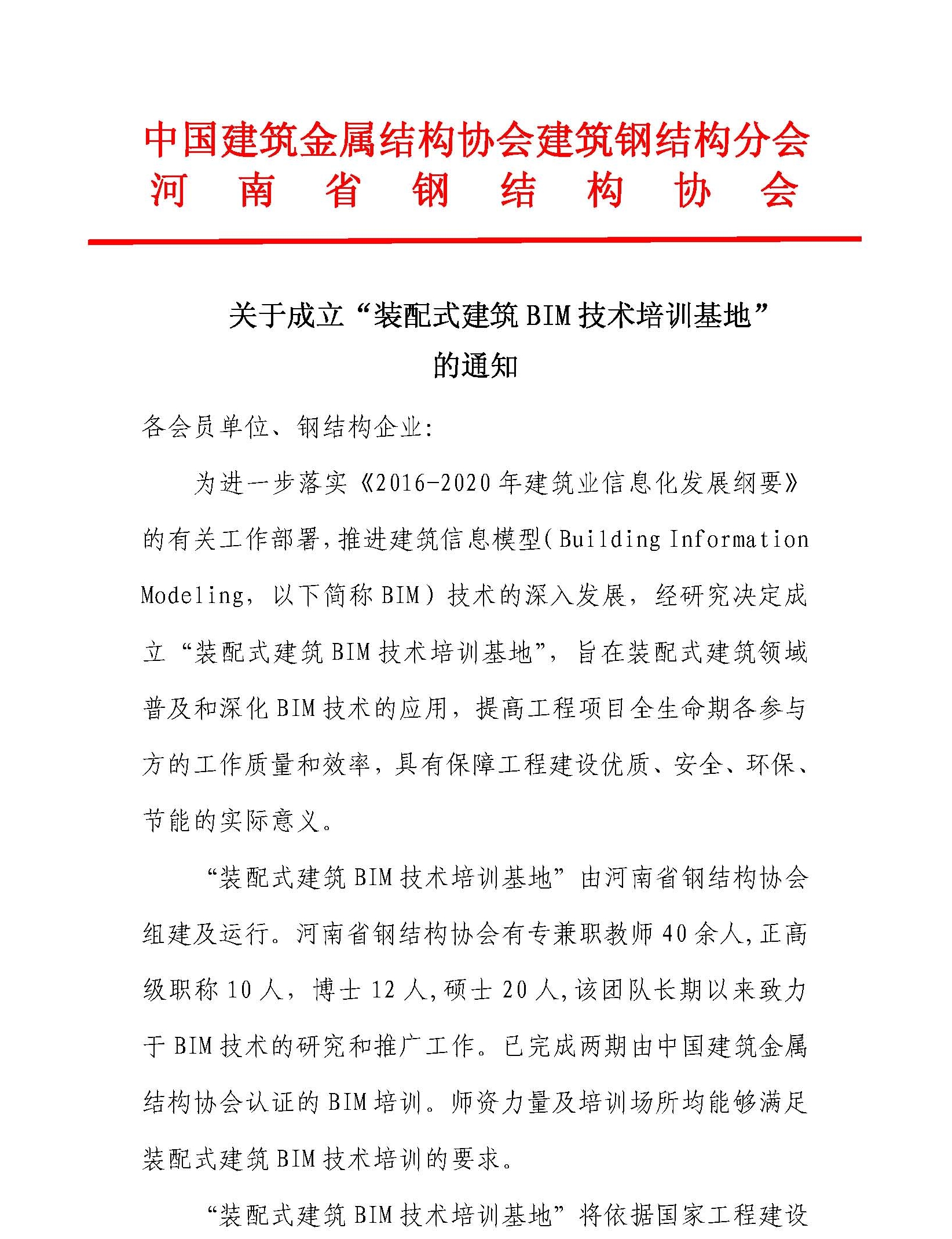 关于成立“装配式建筑BIM技术培训基地”的通知