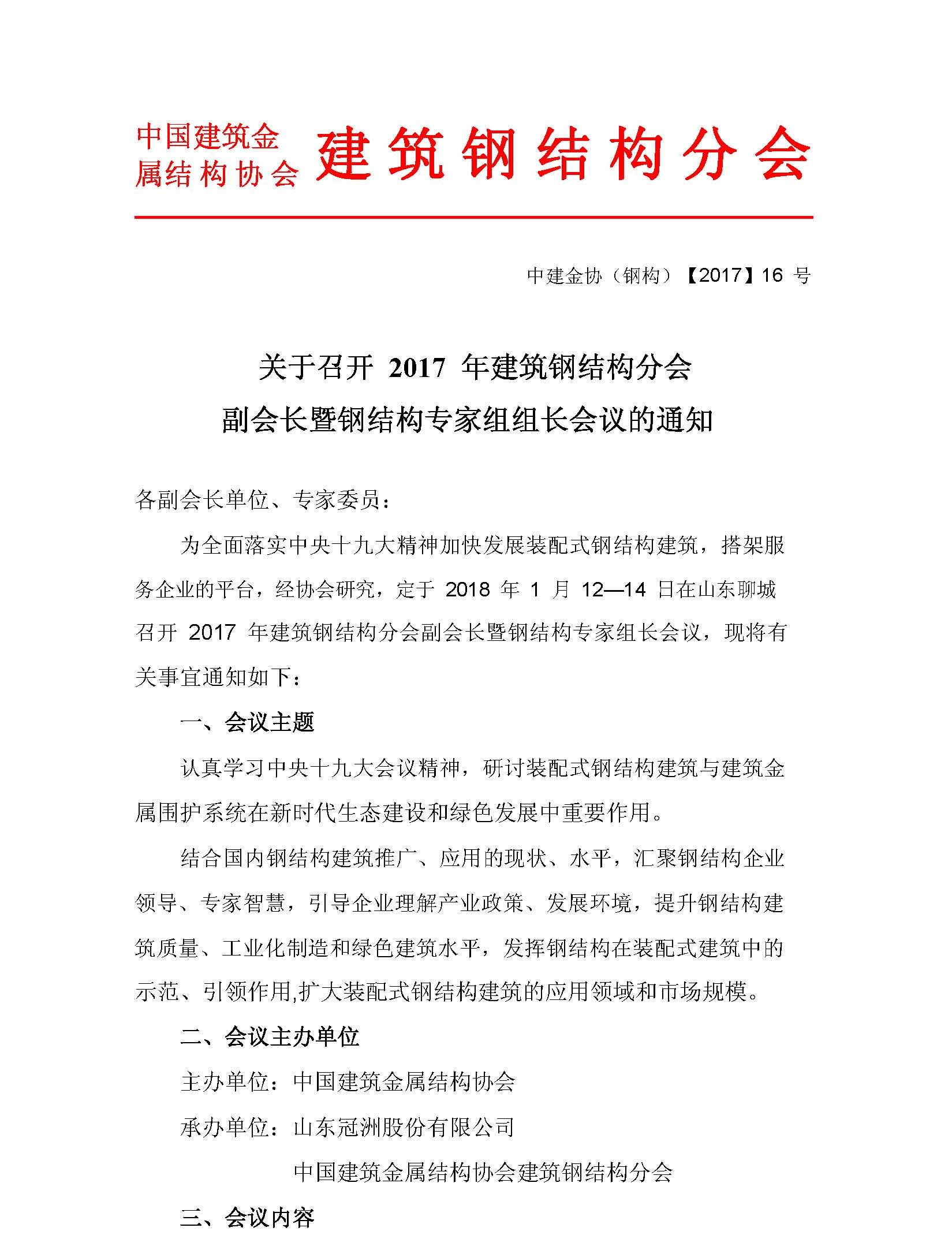 关于召开2017年建筑钢结构分会副会长暨钢结构专家组组长会议的通知