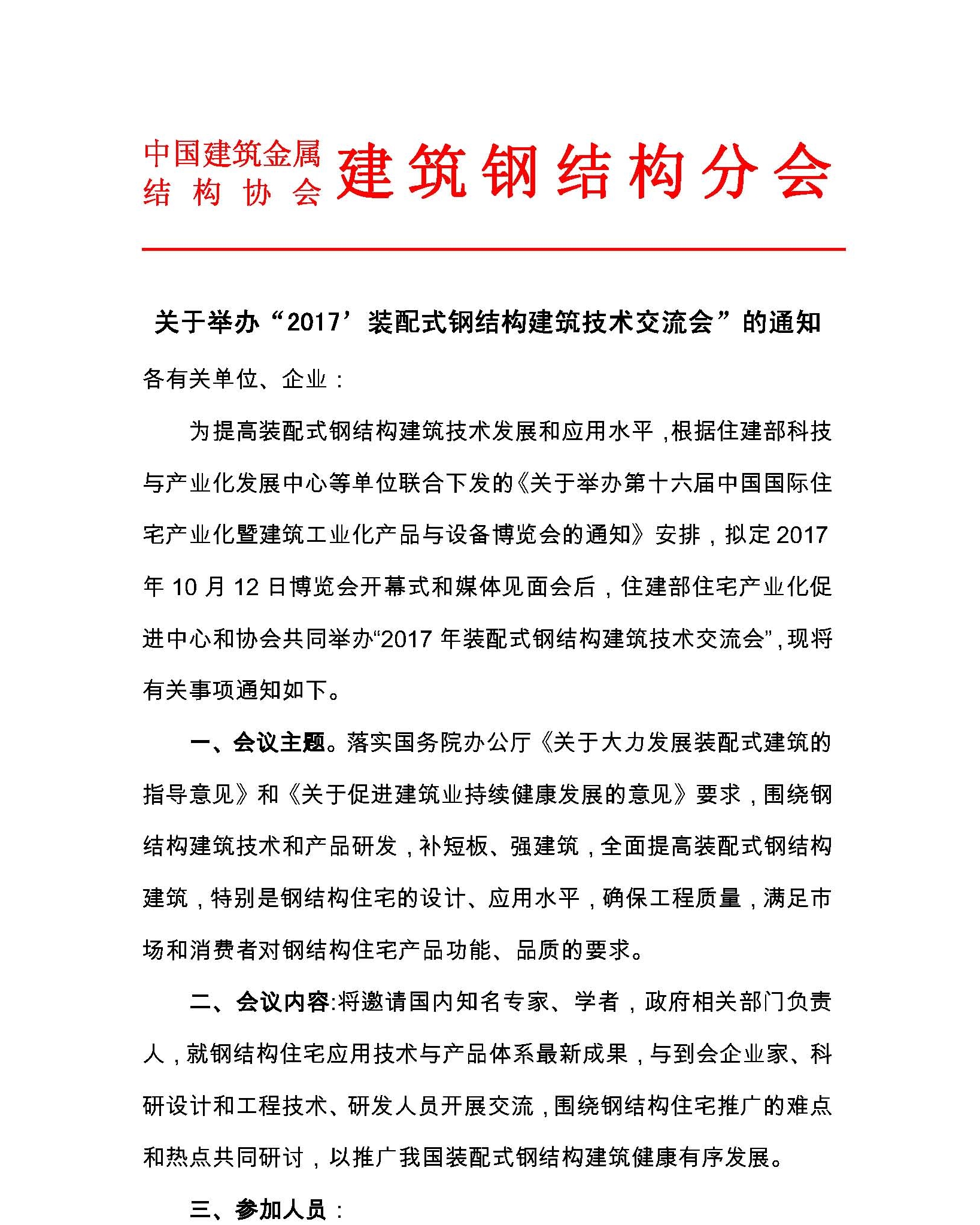 关于住博会举办“2017’装配式钢结构建筑技术交流会”的通知