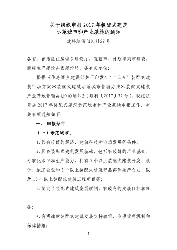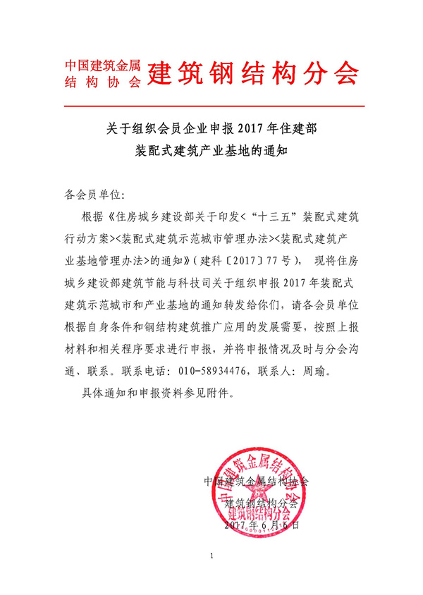关于组织会员企业申报2017年住建部 装配式建筑产业基地的通知