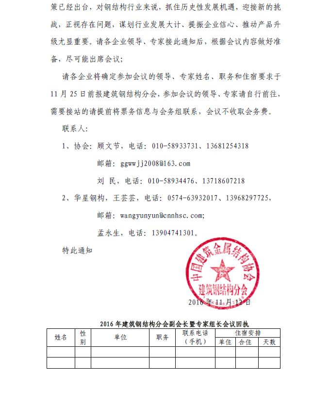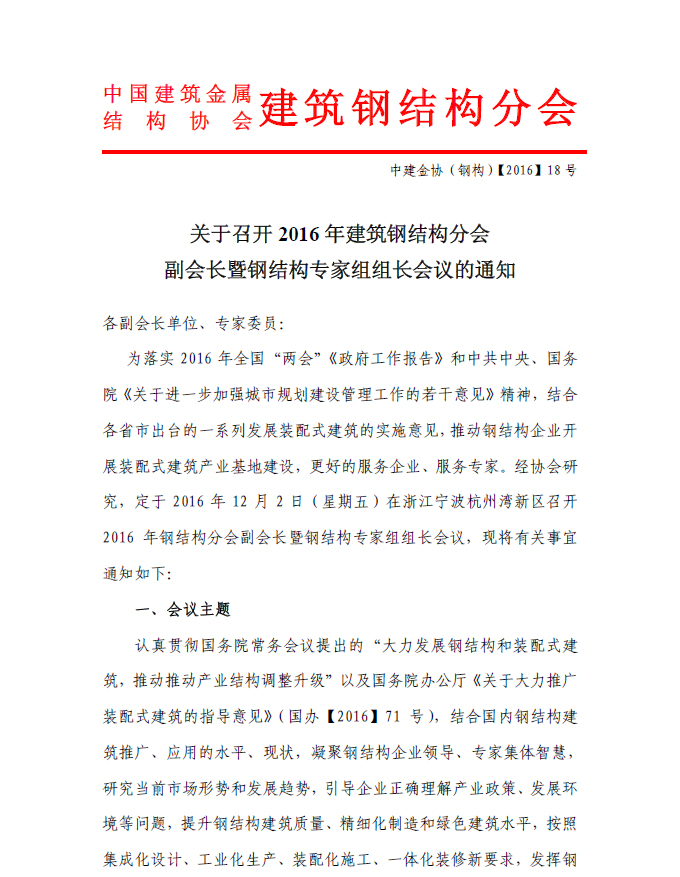 关于召开2016年建筑钢结构分会 副会长暨钢结构专家组组长会议的通知