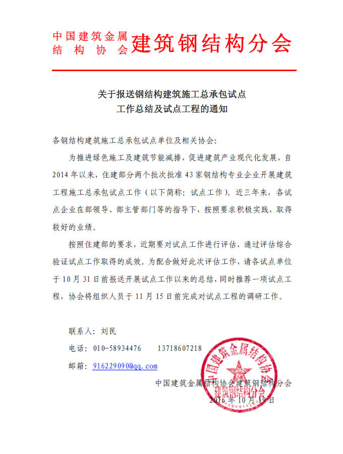 关于报送钢结构建筑施工总承包试点工作总结及试点工程的通知