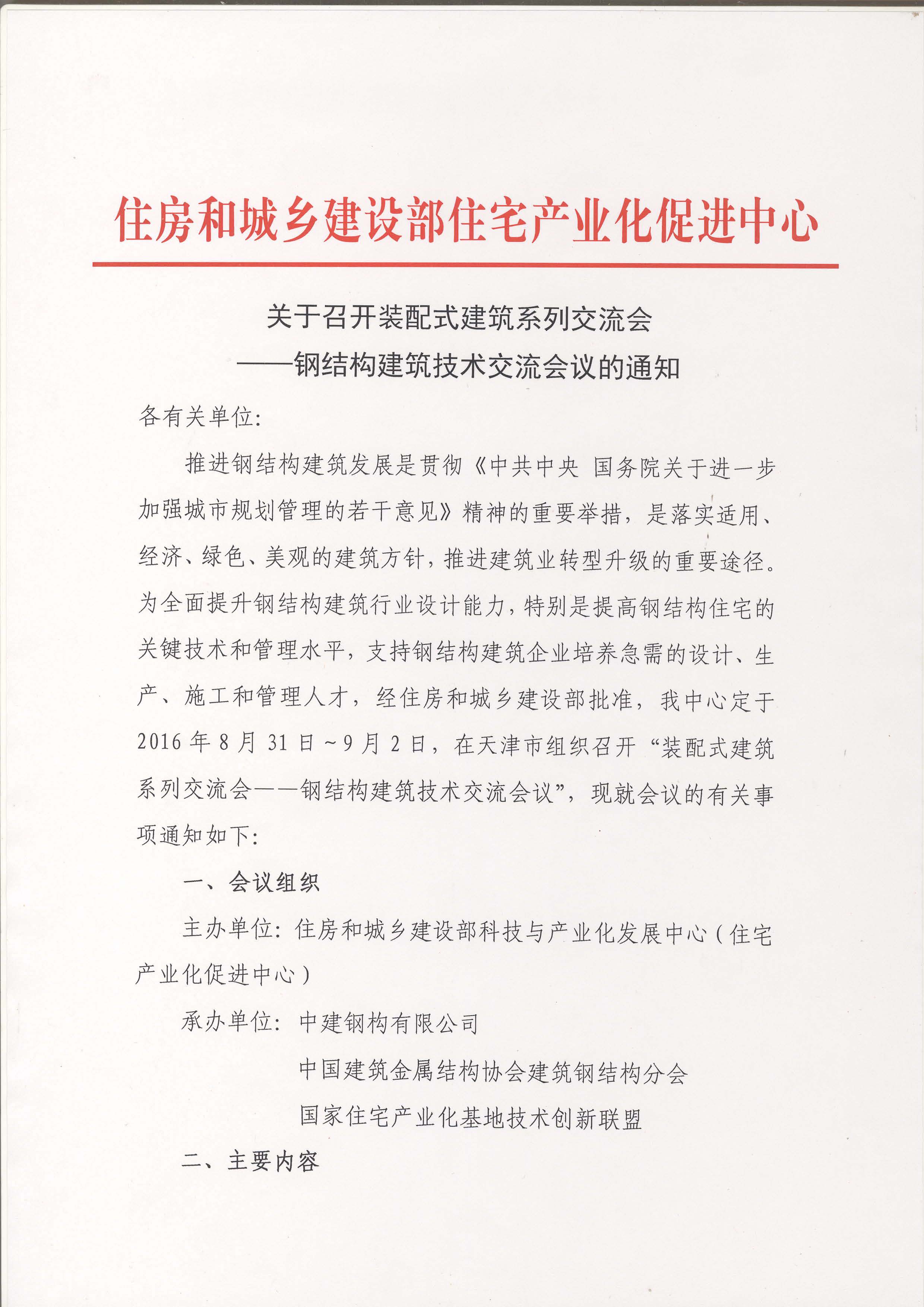 关于召开装配式建筑系列交流会-钢结构建筑技术交流会议的通知