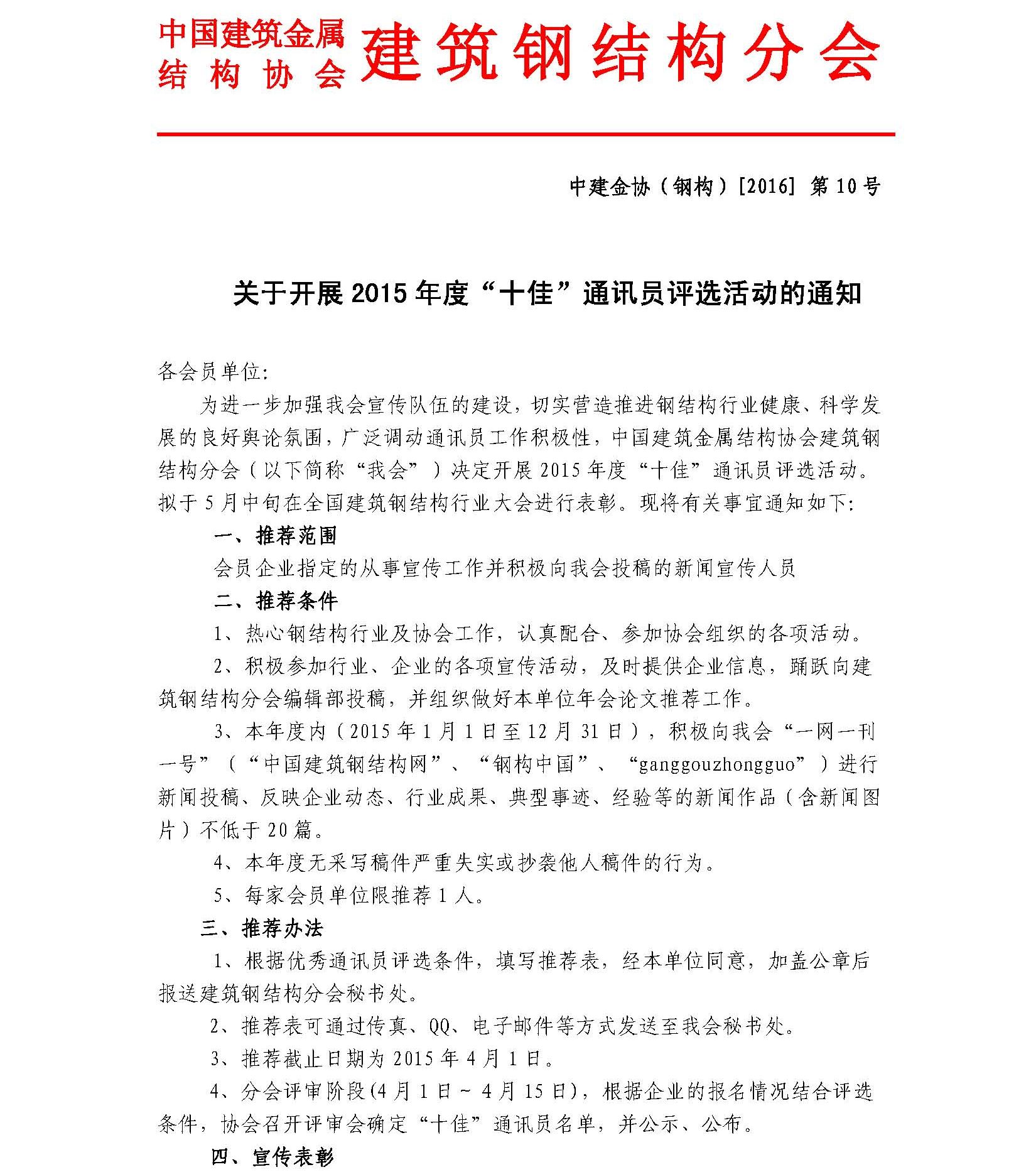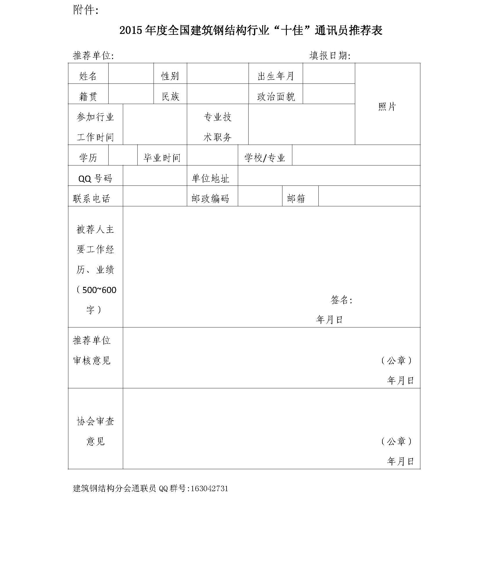 2015年度全国建筑钢结构行业“十佳”通讯员推荐表