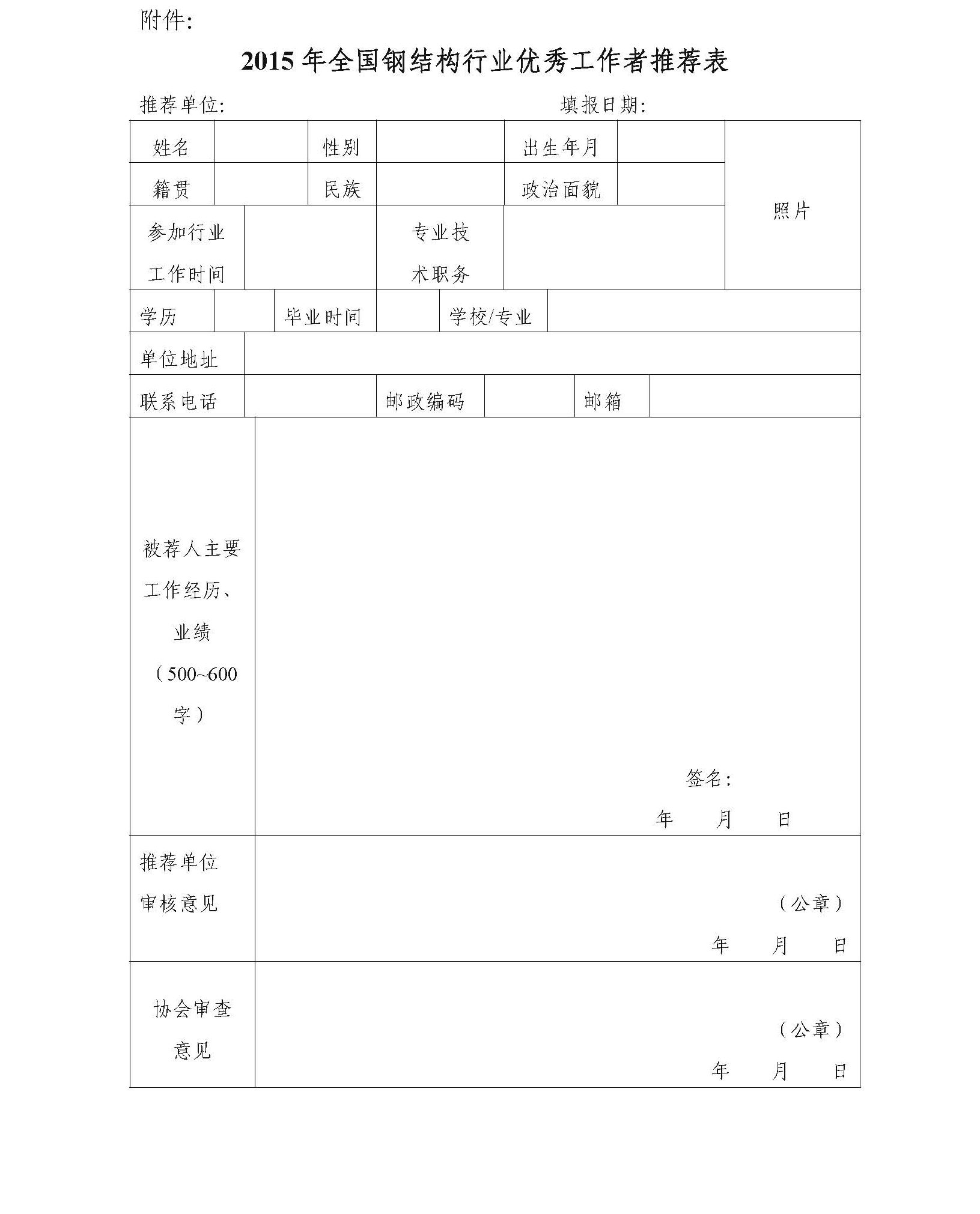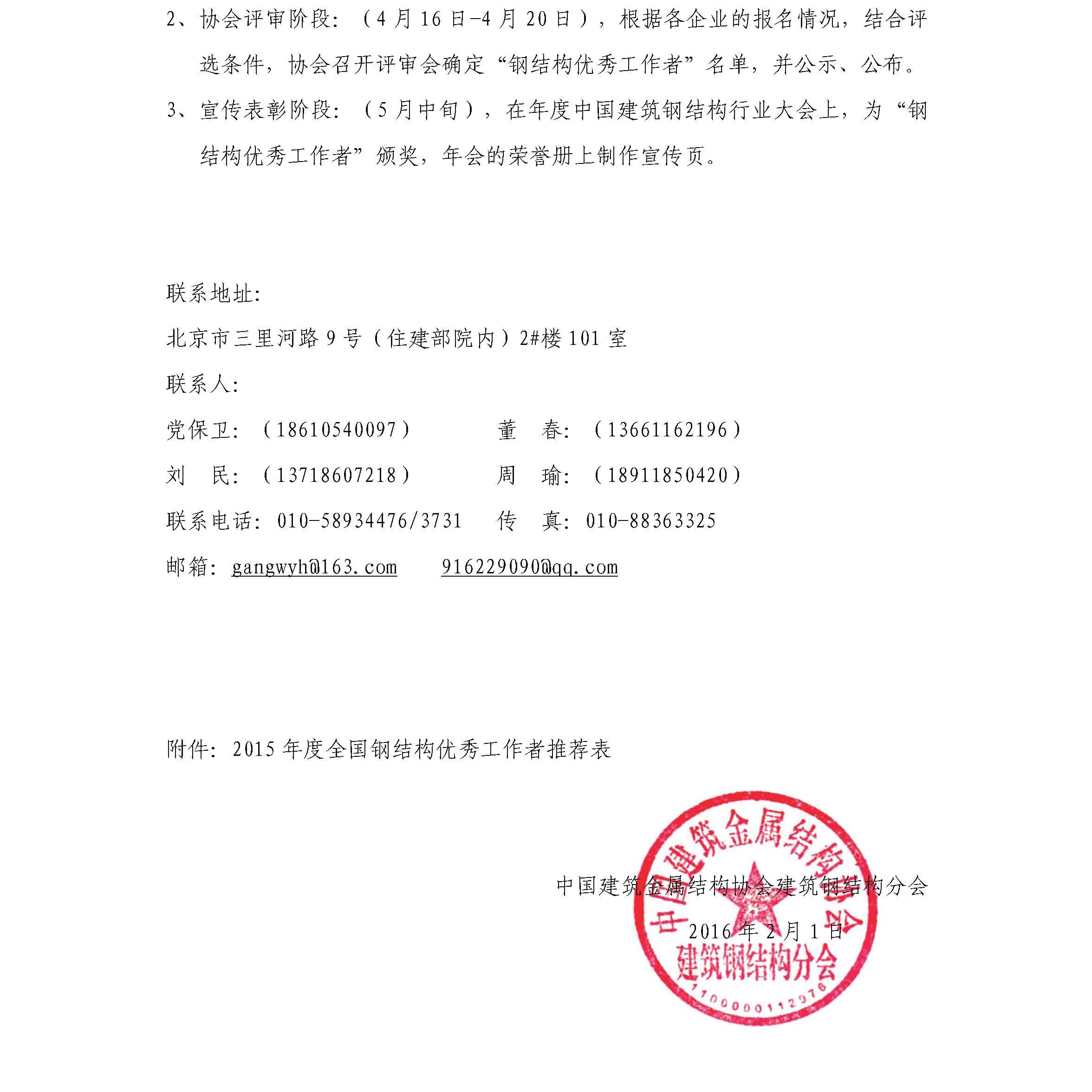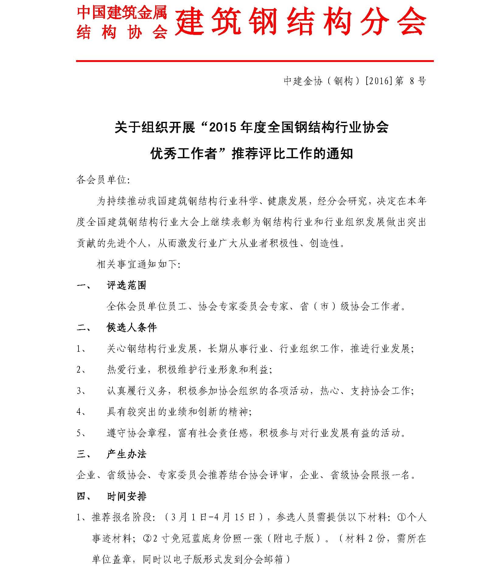 关于组织开展“2015年度全国钢结构行业协会优秀工作者”推荐评比工作的通知