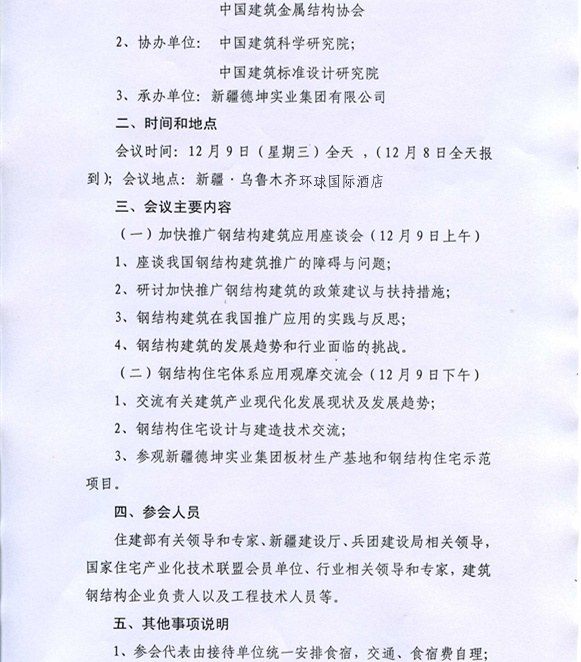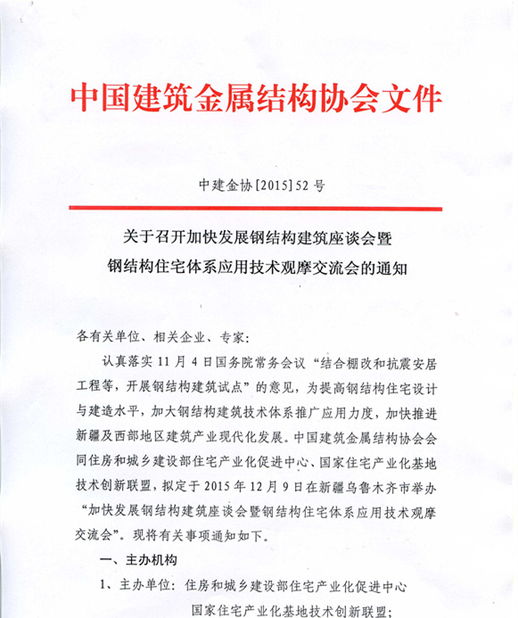 关于召开加快发展钢结构建筑座谈会暨钢结构住宅体系应用技术观摩交流会的通知