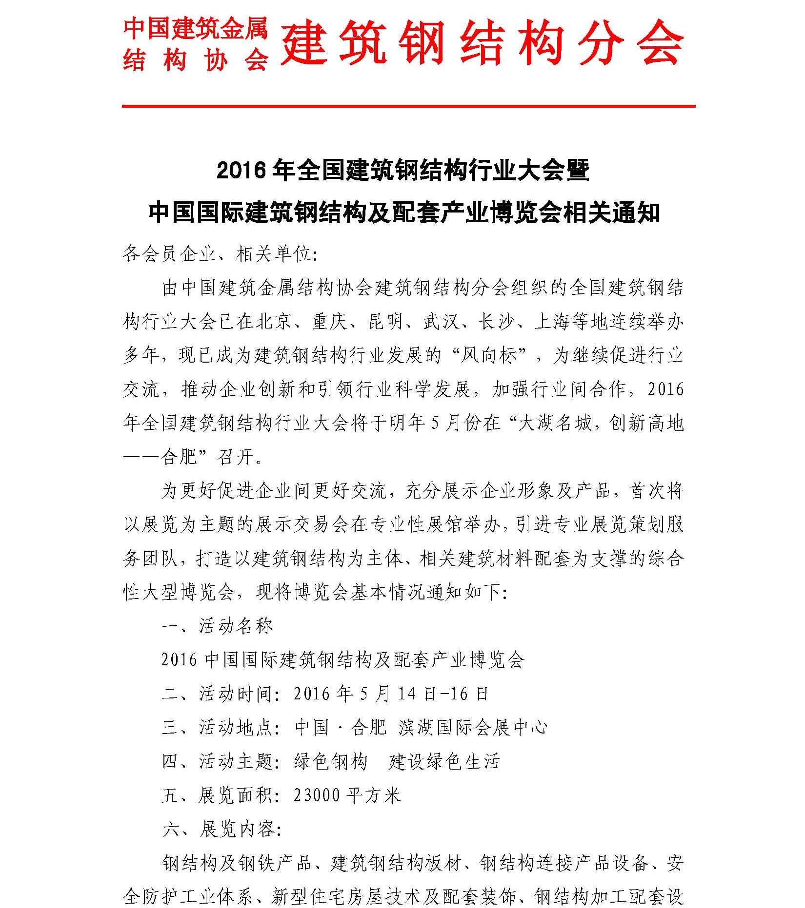 2016年全国建筑钢结构行业大会暨中国国际建筑钢结构及配套产业博览会相关通知