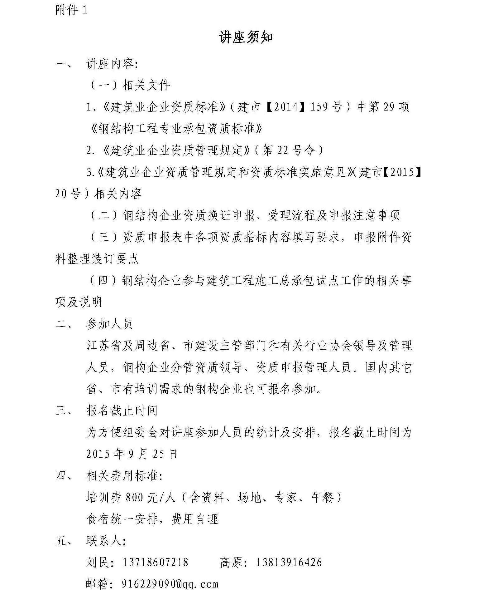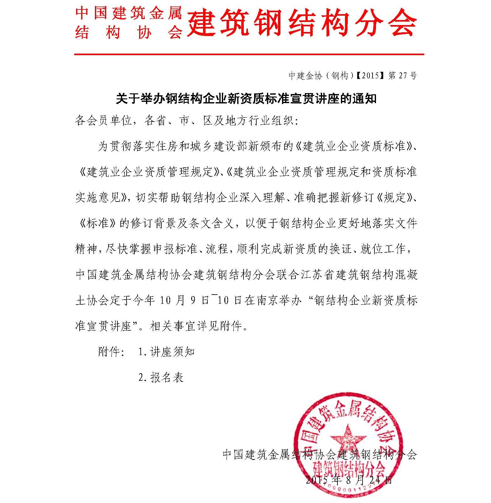 关于举办钢结构企业新资质标准宣贯讲座的通知