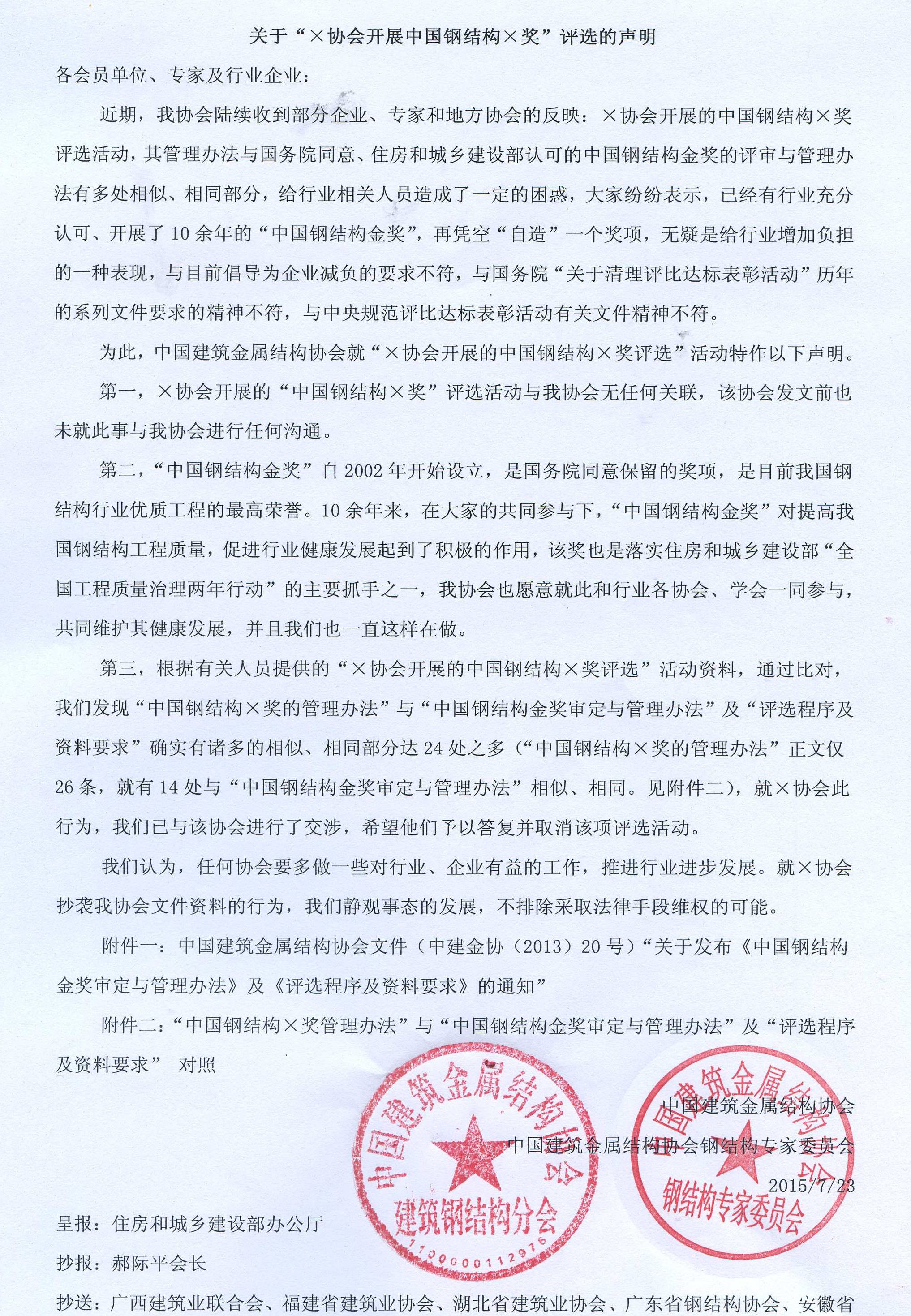 附件一:中国建筑金属结构协会文件(中建金协(2013)20号)“关于发布《中国钢结构金奖审定与管理办法》及《评选程序及资料要求》的通知”