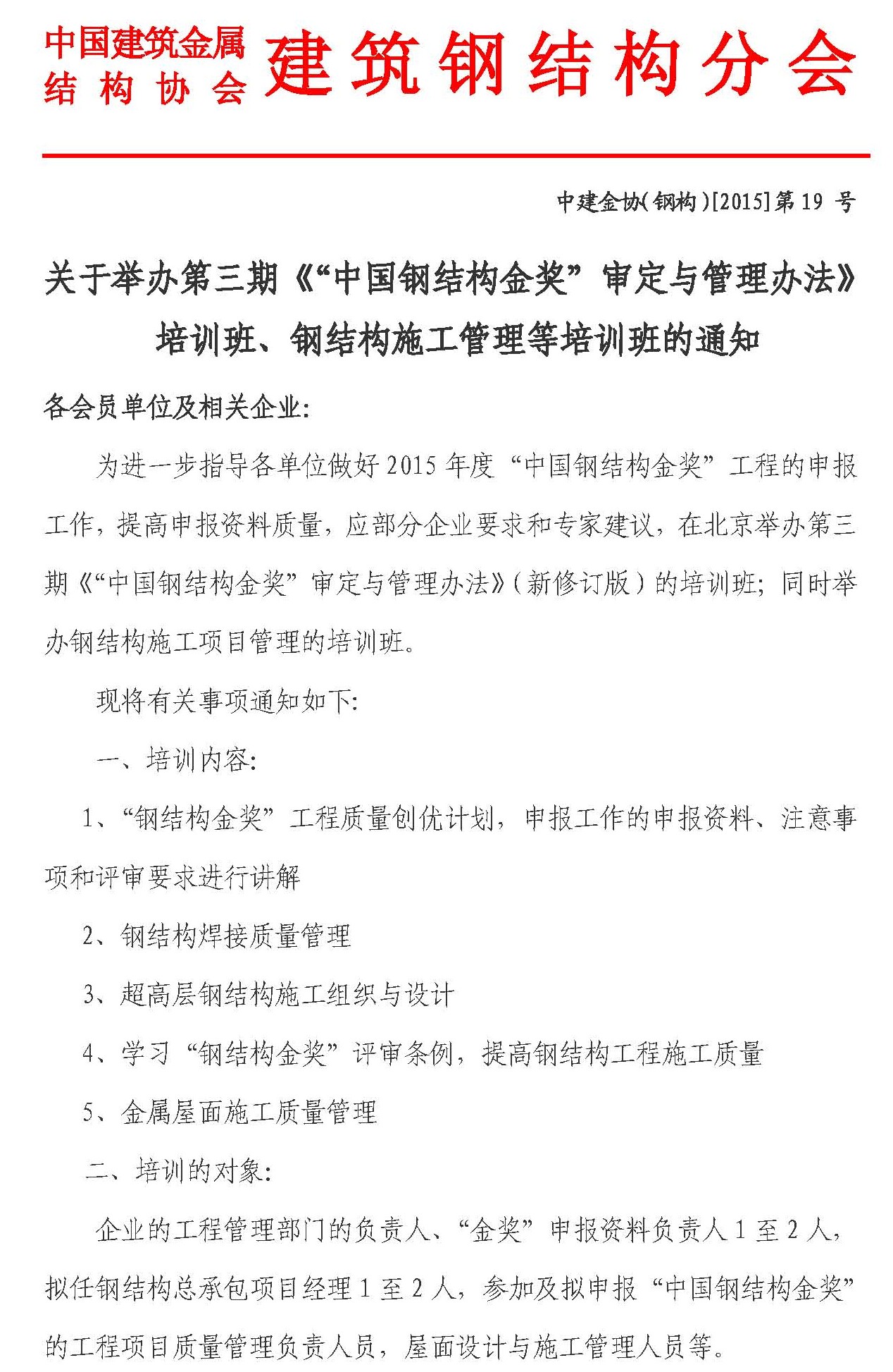 关于举办第三期《“中国钢结构金奖”审定与管理办法》 培训班、钢结构施工管理等培训班的通知