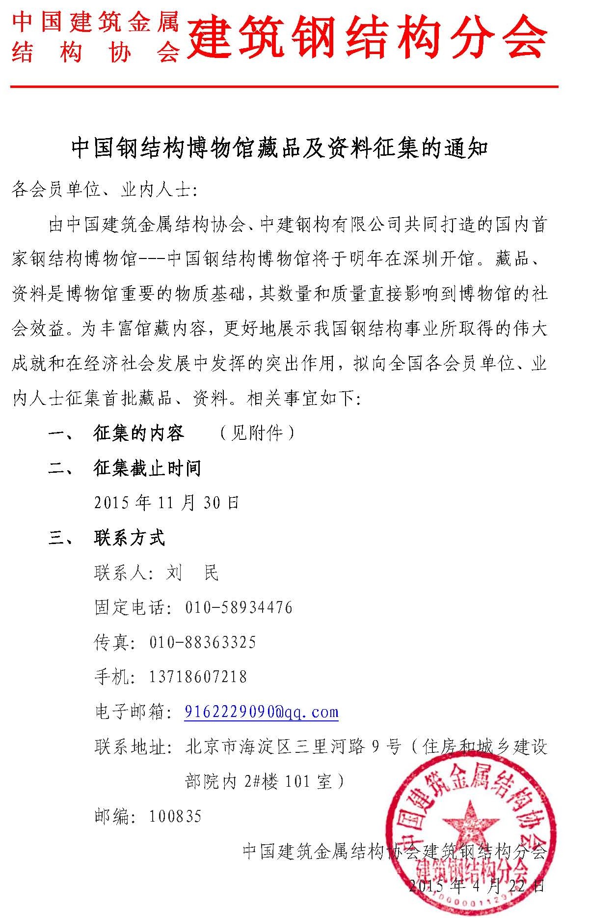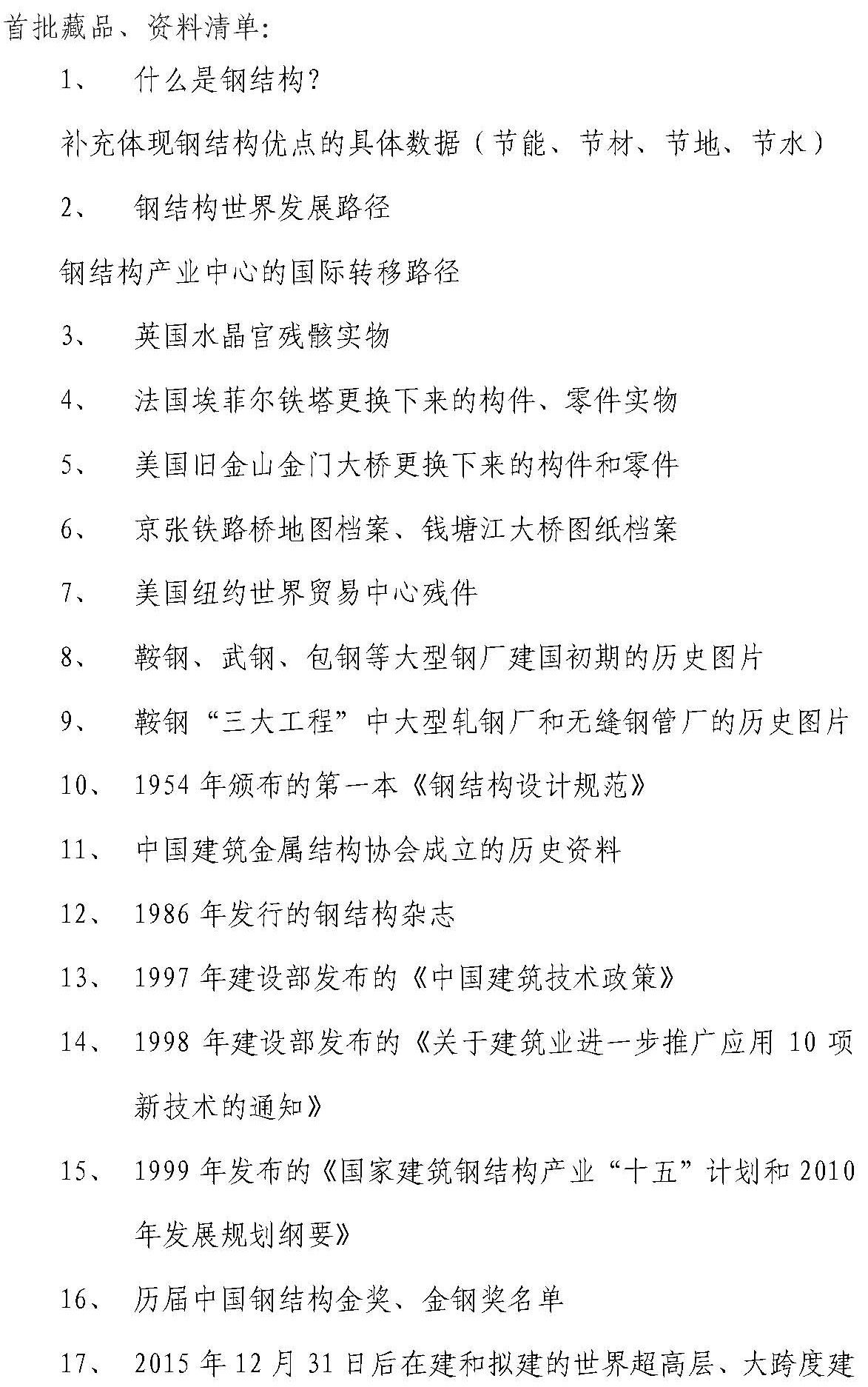 中国钢结构博物馆藏品及资料征集的通知