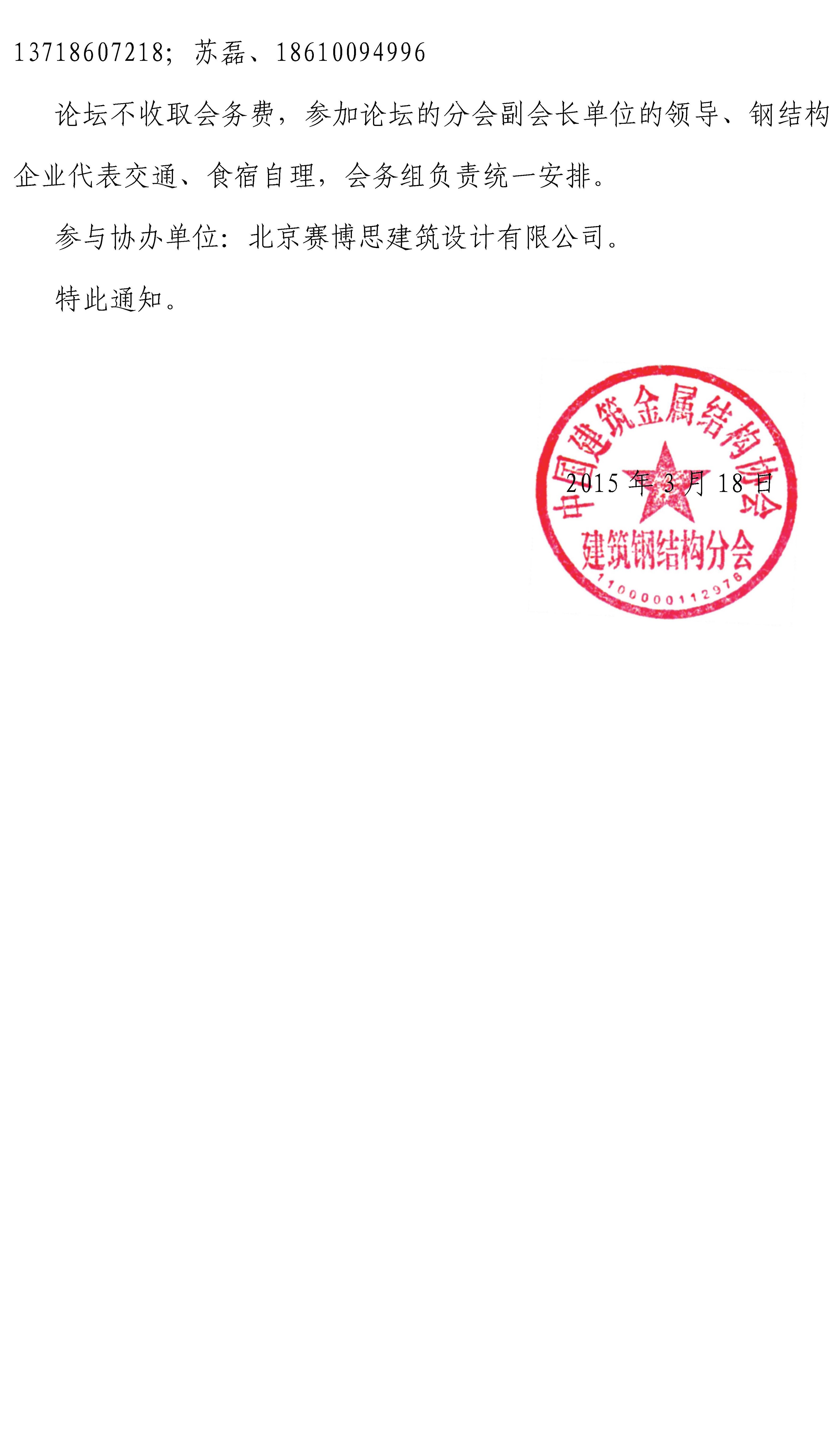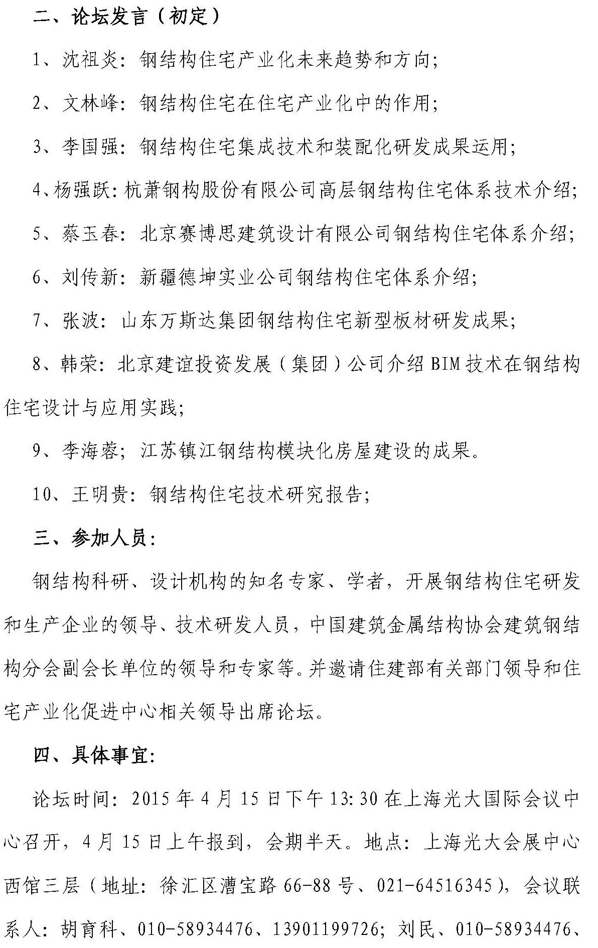关于在钢结构行业大会期间举办 “2015’钢结构住宅产业化创新论坛”的通知