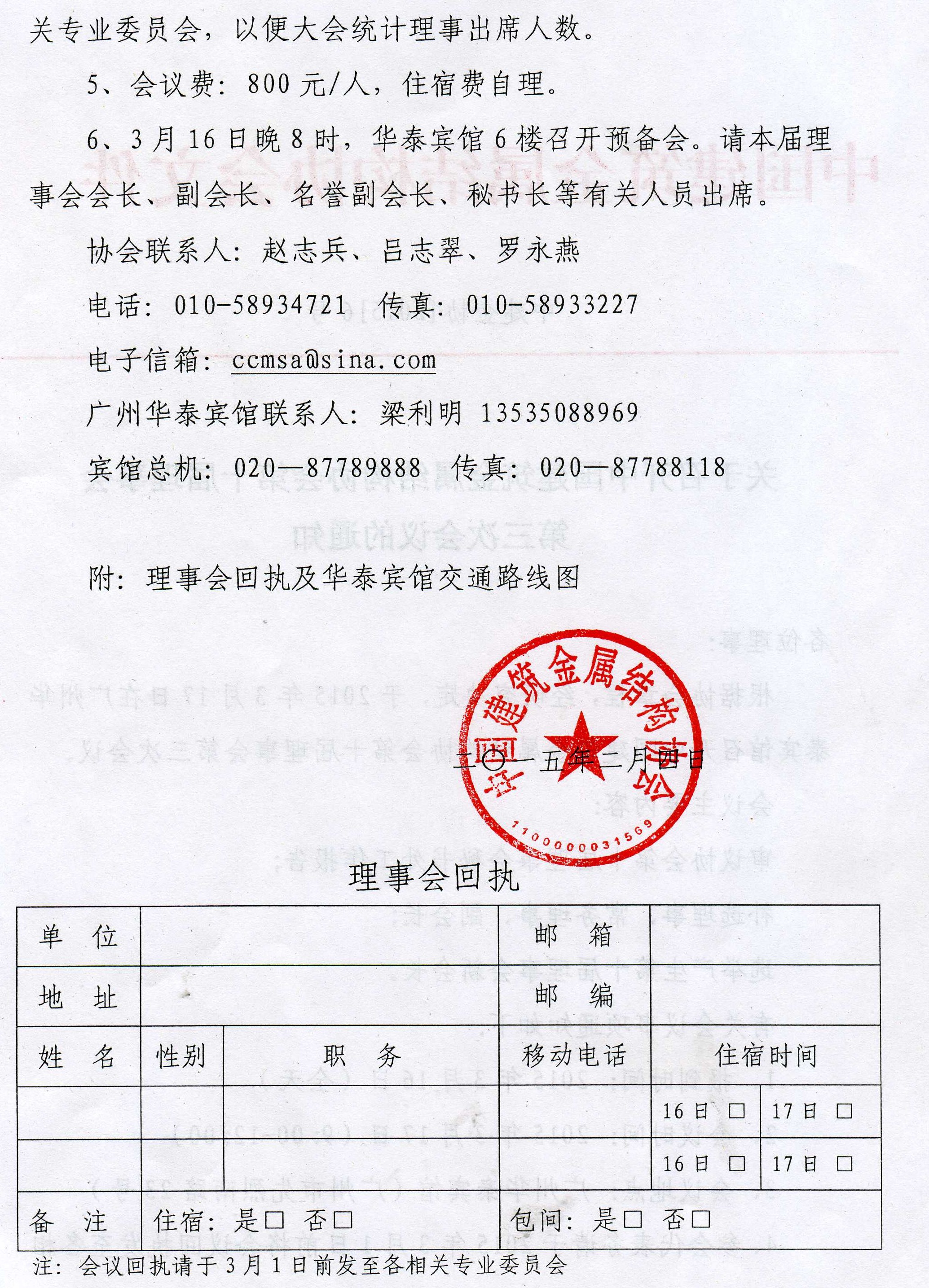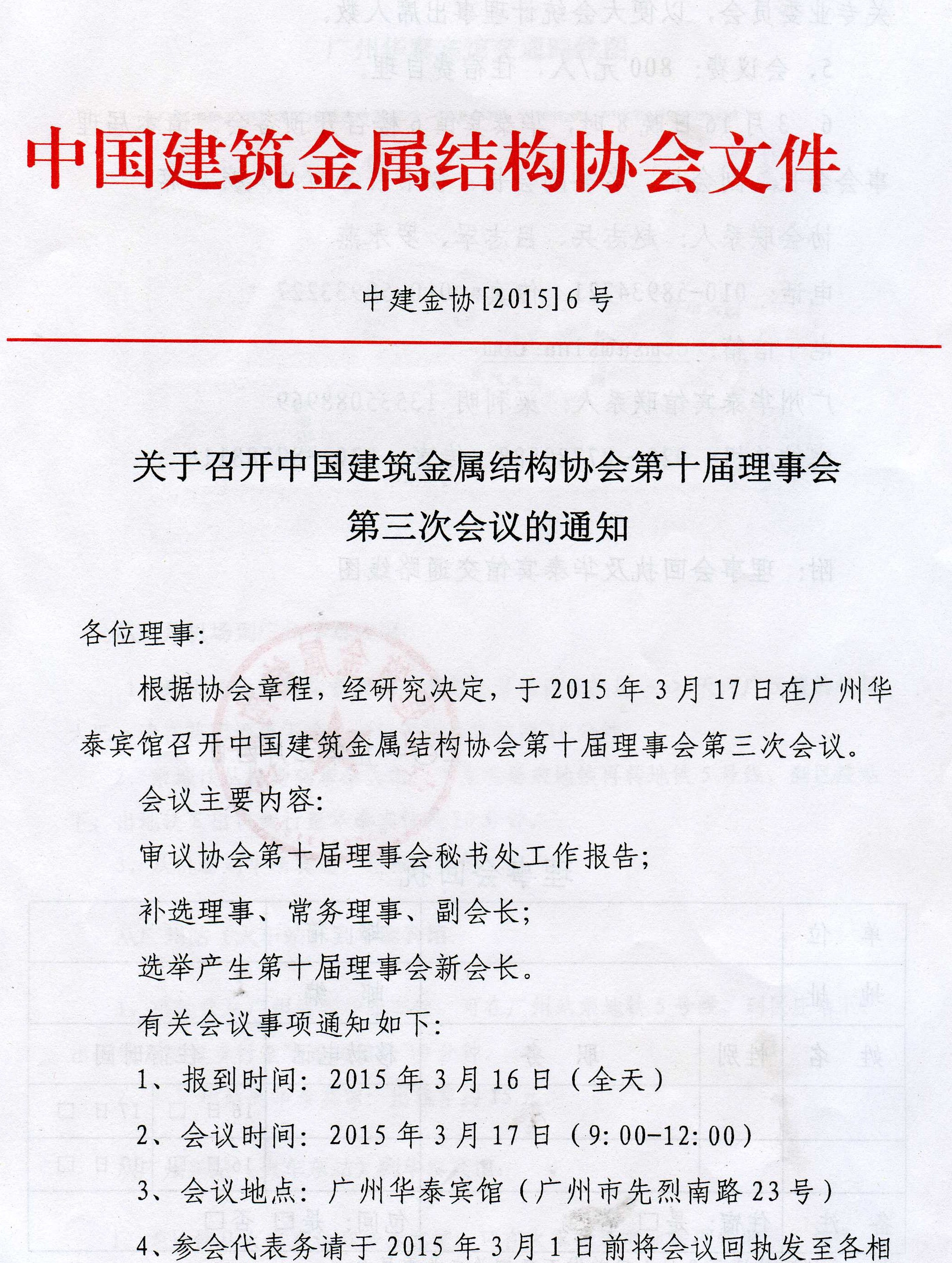关于召开中国建筑金属结构协会第十届理事会第三次会议的通知