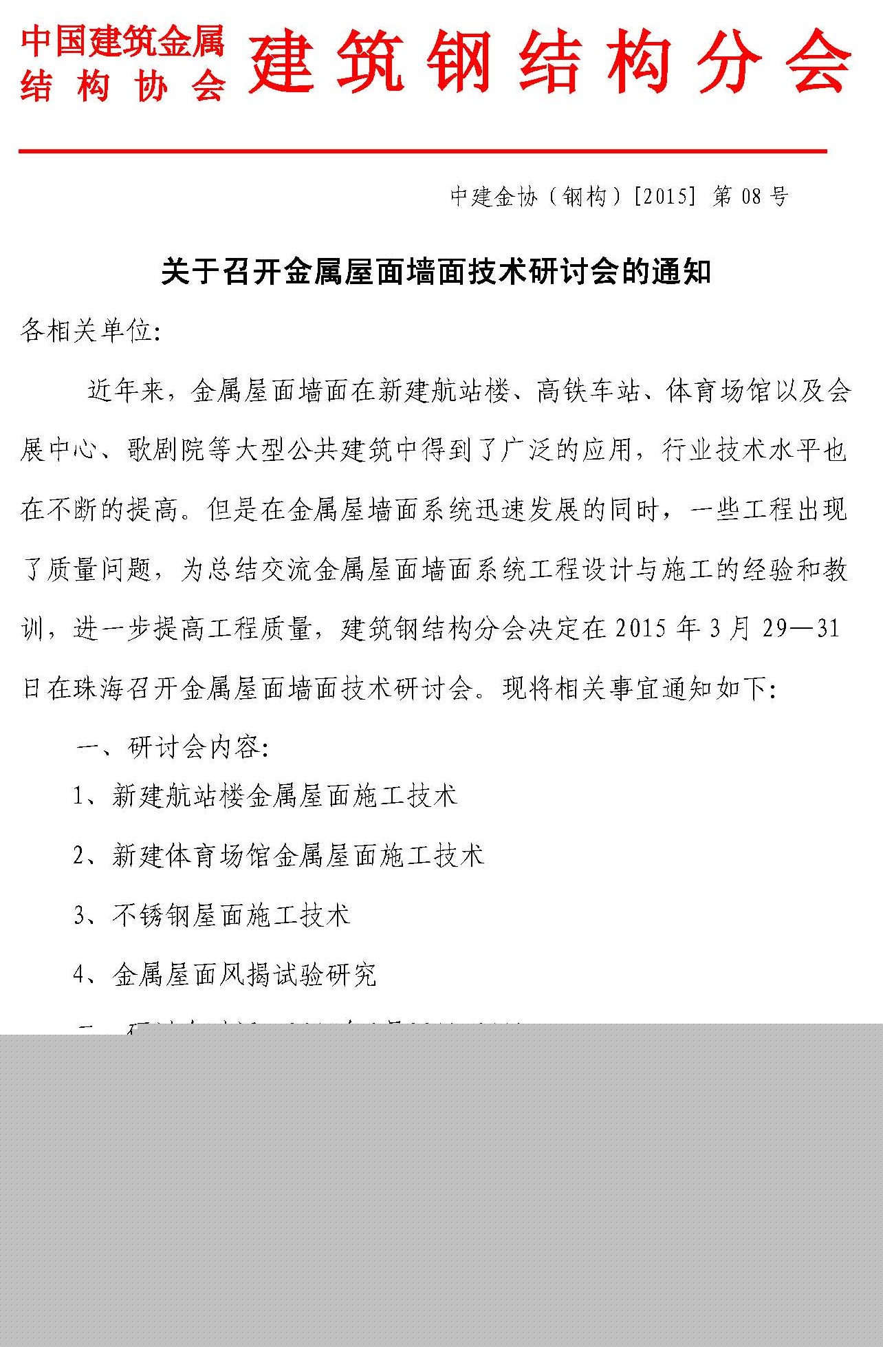 关于召开金属屋面墙面技术研讨会的通知