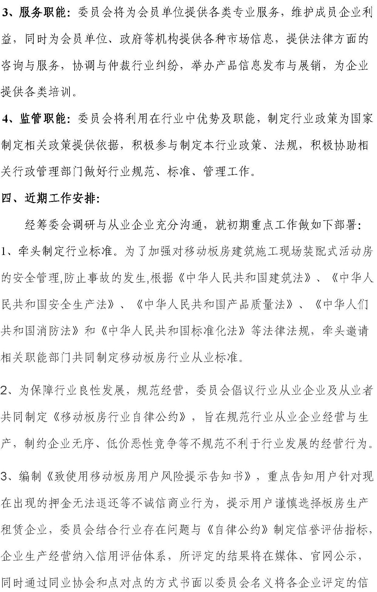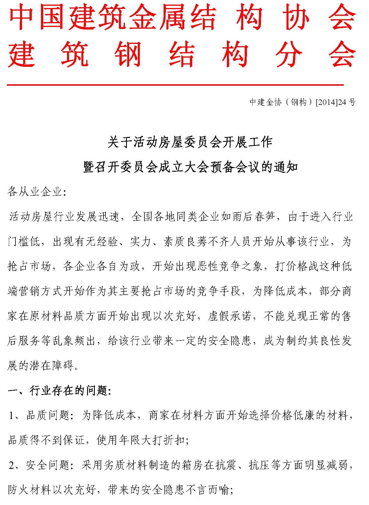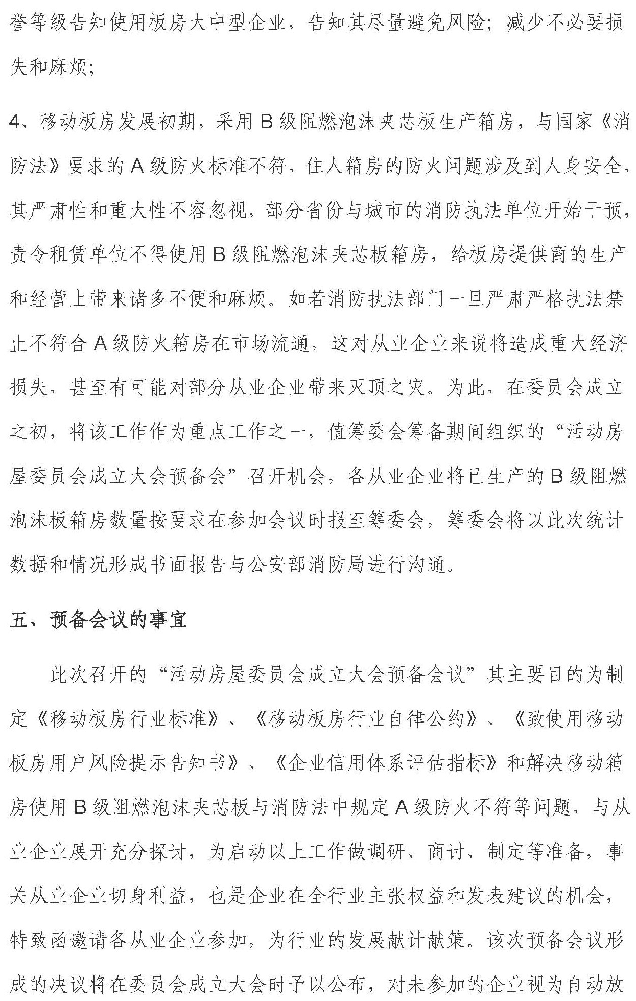 关于活动房屋委员会开展工作暨召开委员会成立大会预备会议的通知