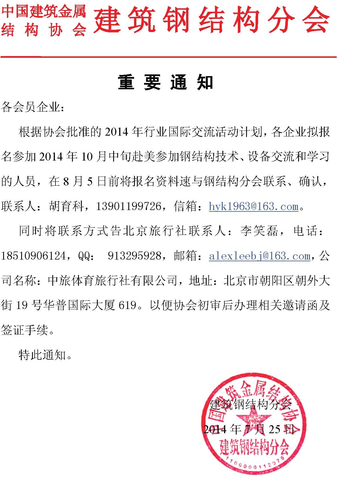关于2014年十月中旬赴美考察的重要通知