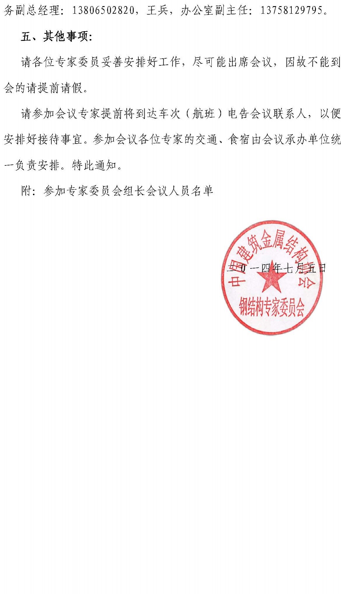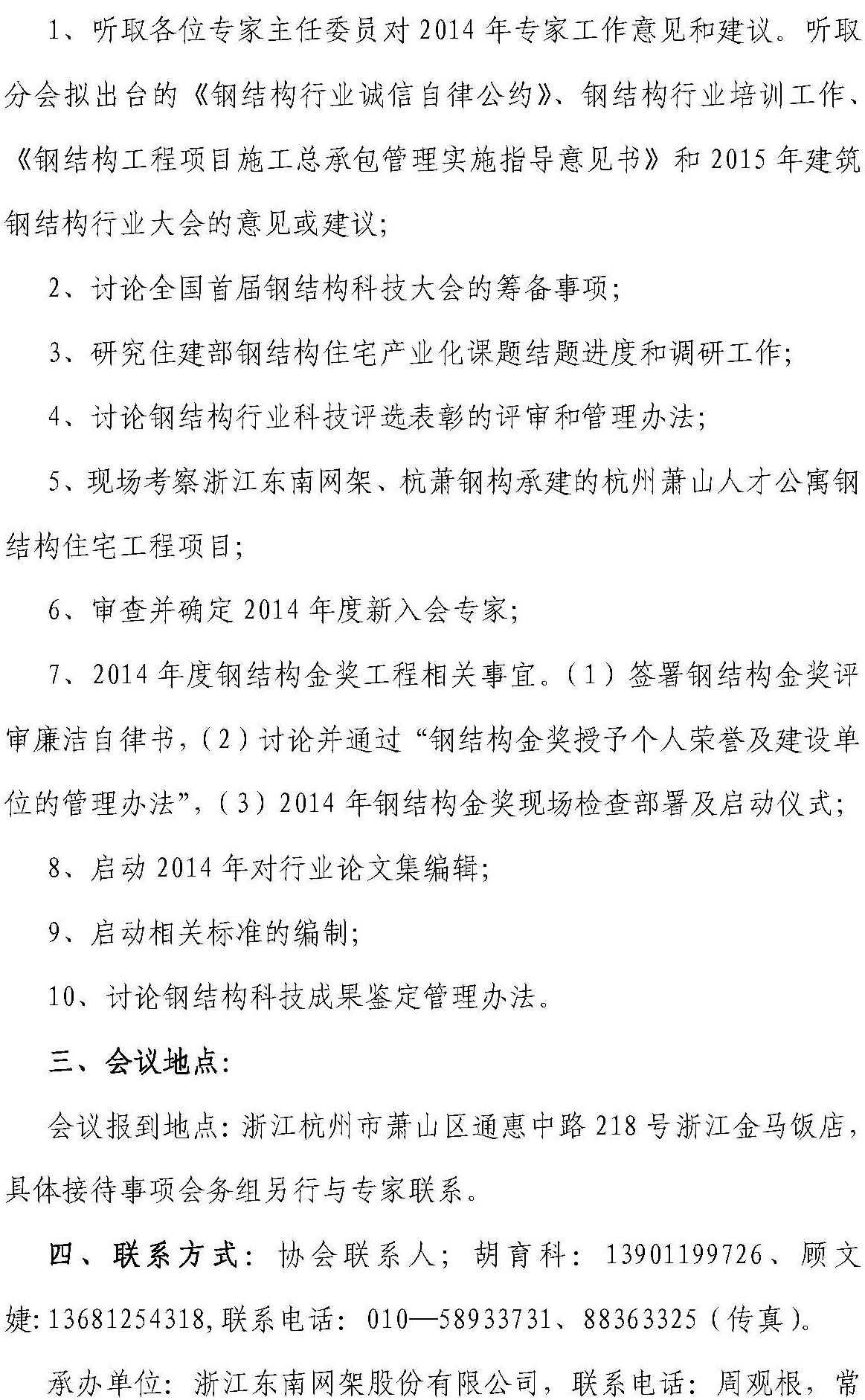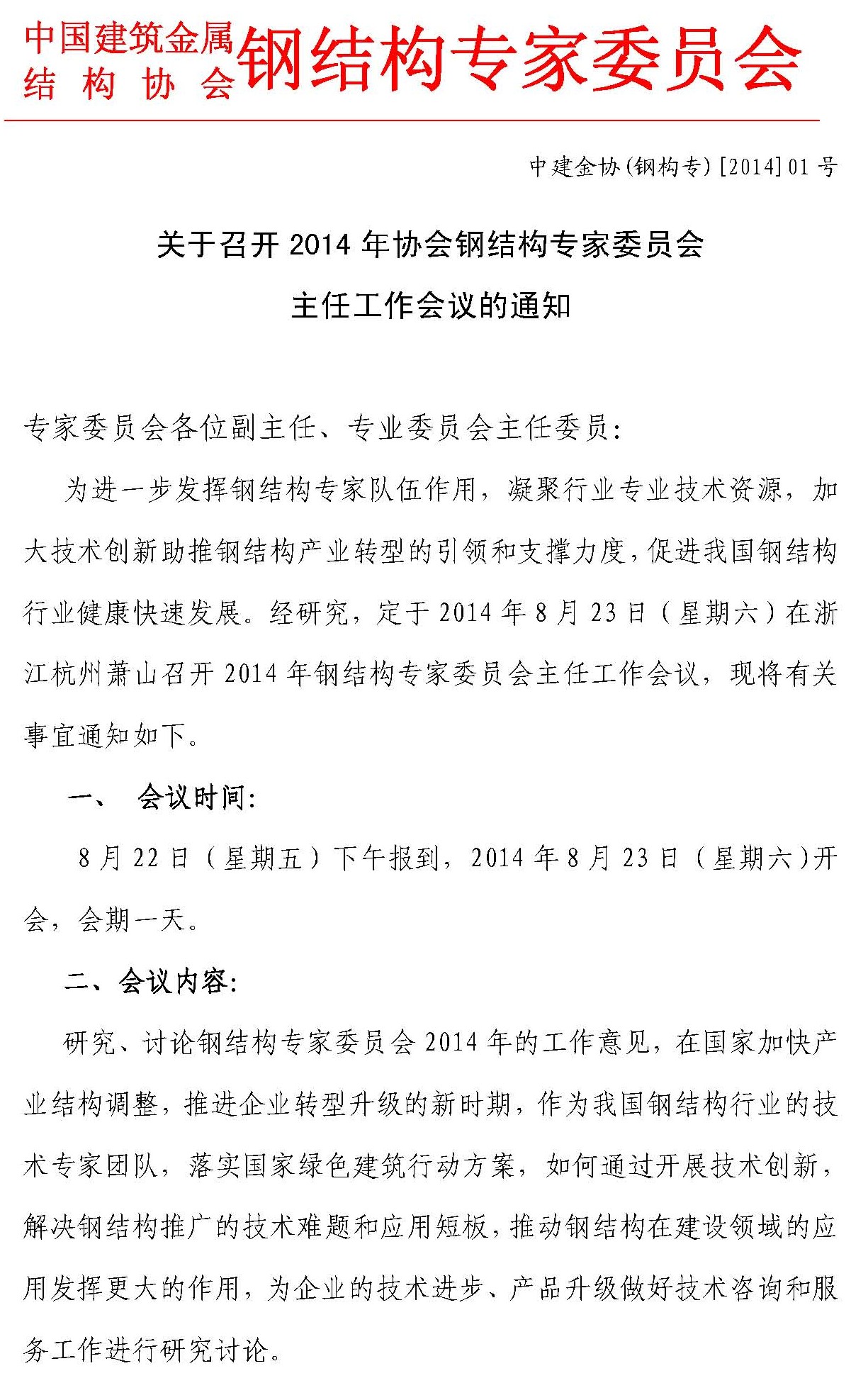 关于召开2014年协会钢结构专家委员会主任工作会议的通知