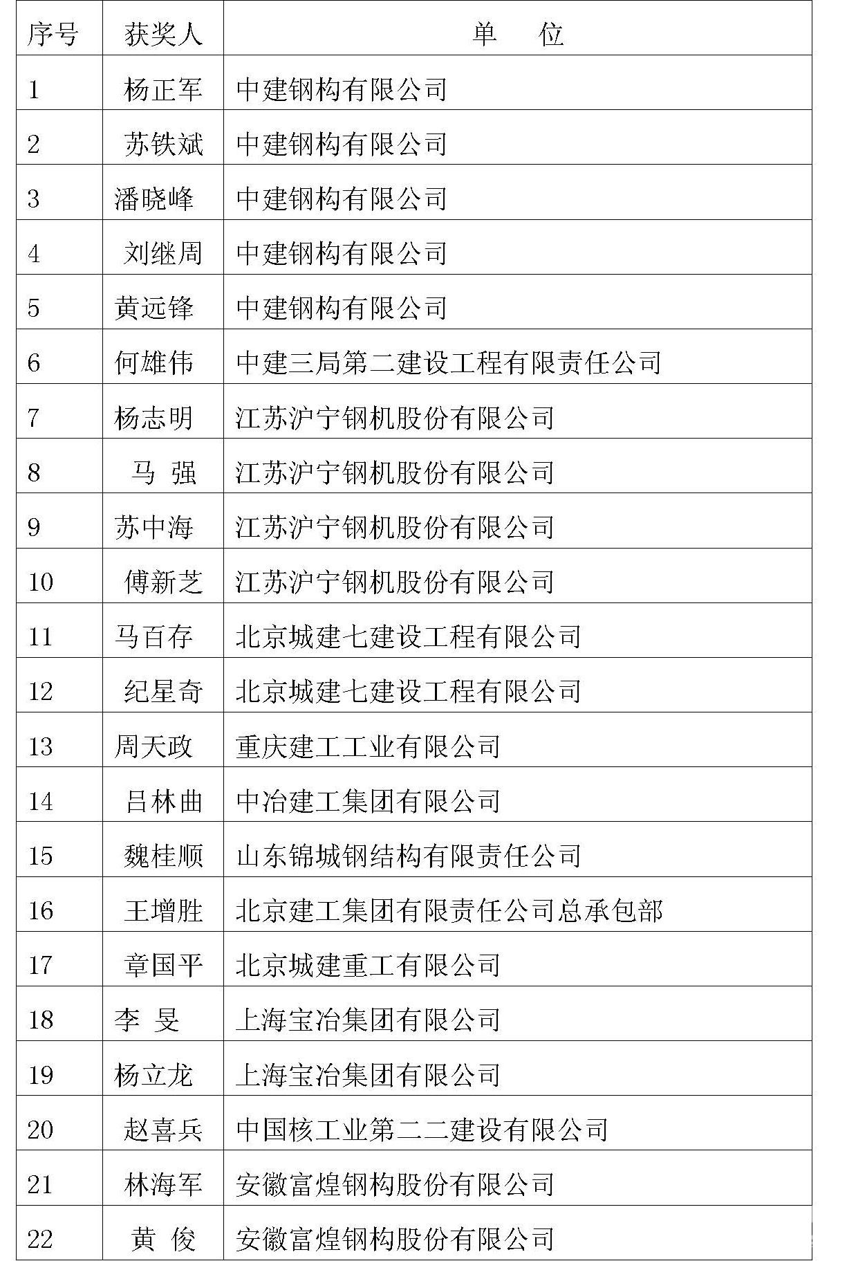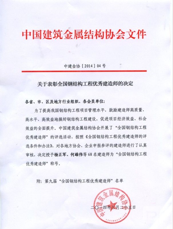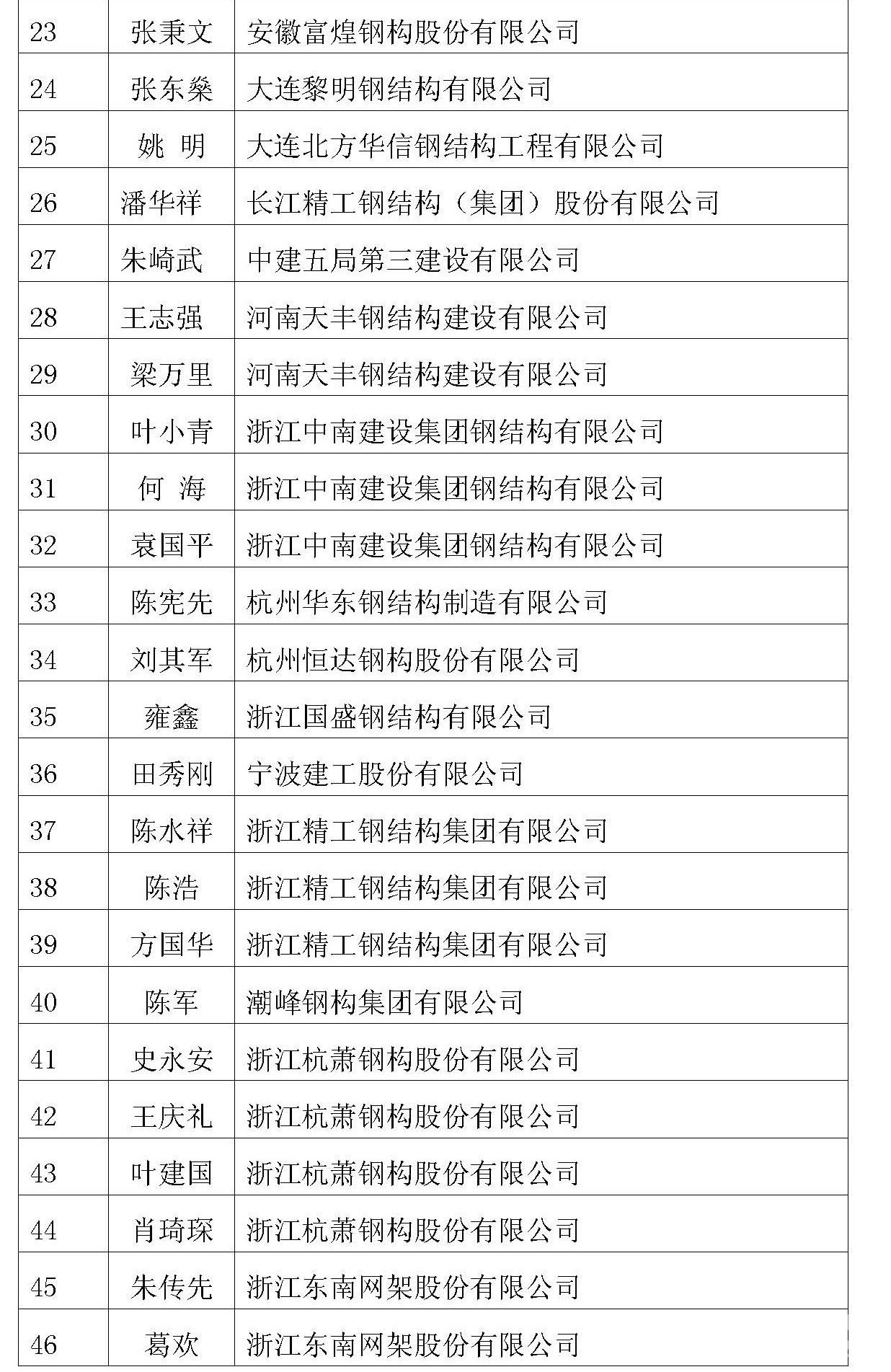 荣获第九届全国钢结构工程优秀建造师名单公布
