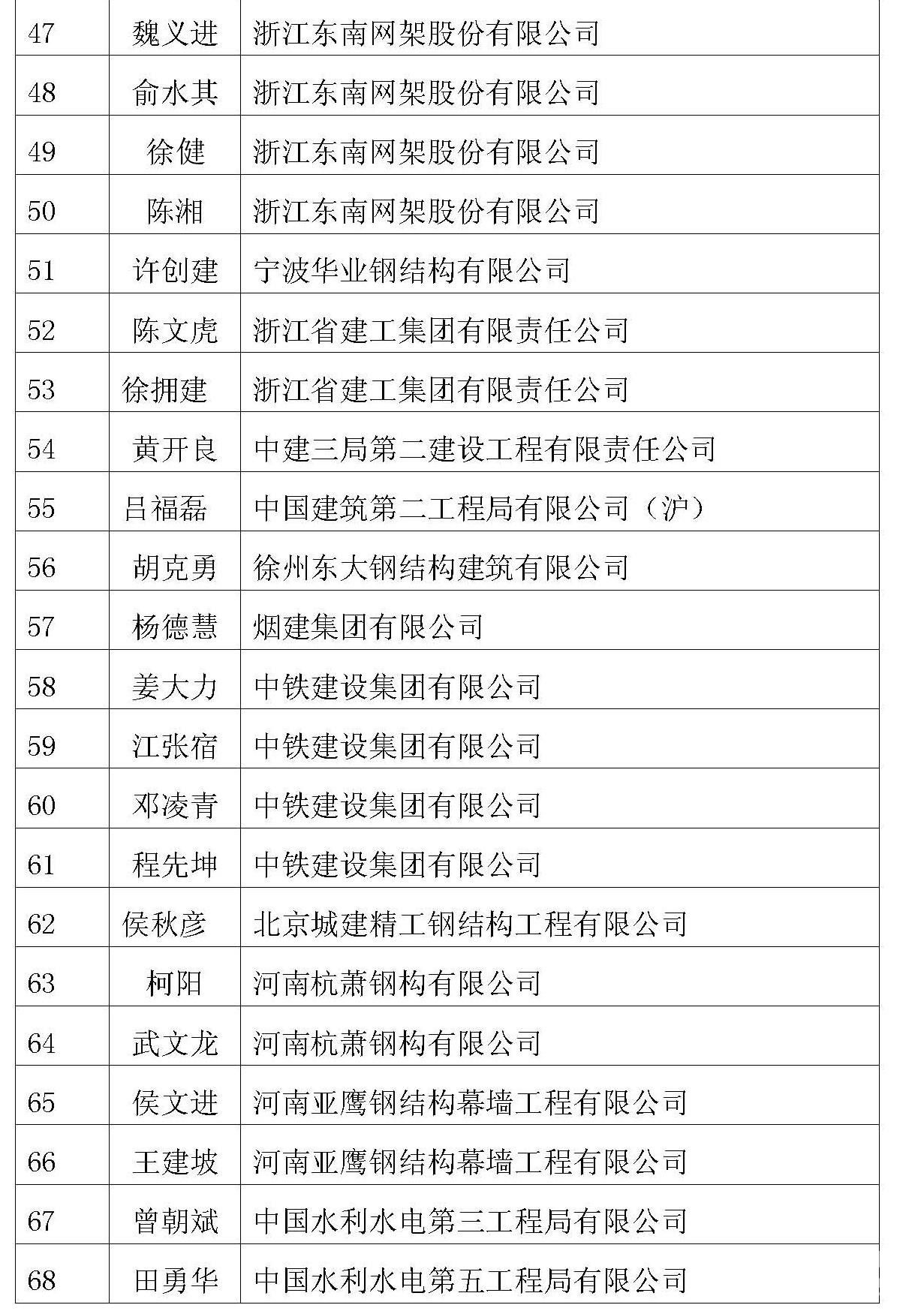 第九届全国钢结构工程优秀建造师名单公布