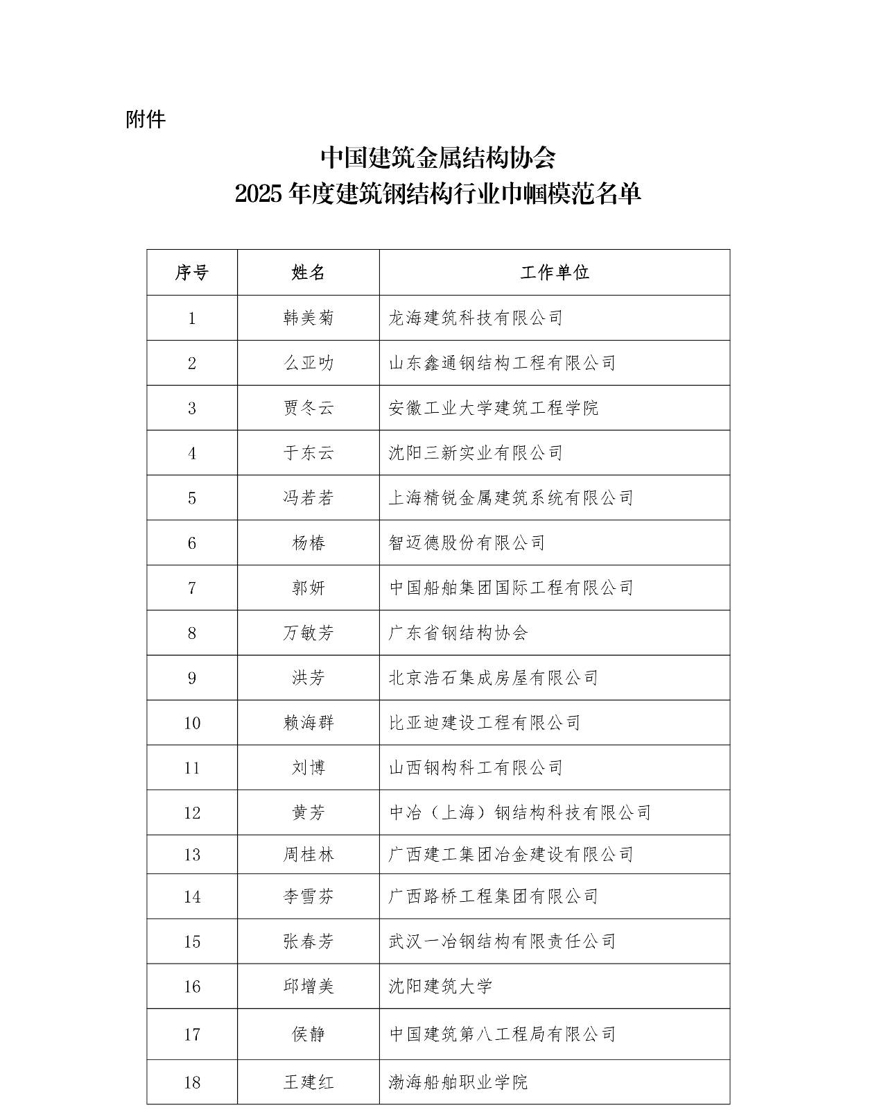 关于授予2025年度建筑钢结构行业巾帼模范荣誉称号的决定(含附件).pdf