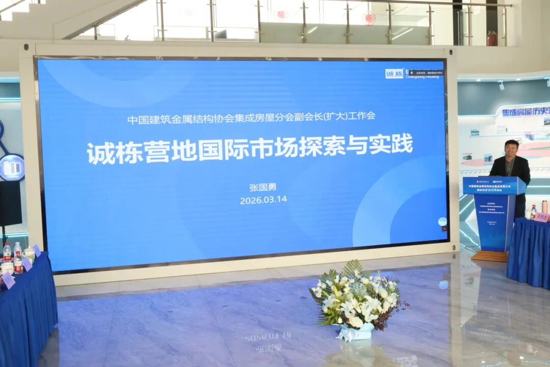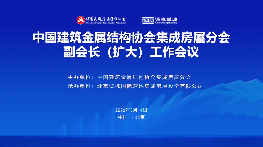 2026年3月14日,中国建筑金属结构协会集成房屋分会副会长(扩大)工作会议在北京隆重召开。来自全国各地的副会长单位代表、行业专家及企业负责人近40人齐聚一堂,共商行业发展大计。本次会议由中国建筑金属结构协会集成房屋分会主办,北京诚栋国际营地集成房屋股份有限公司承办,会议围绕总结工作成效、研判行业形势、共谋“十五五”发展,推动行业高质量发展为主题,严格按照会议议程有序推进,取得了丰硕的成果。开幕式由中国建筑金属结构协会集成房屋分会副会长兼秘书长邢春玲主持。 中国建筑金属结构协会副会长兼秘书长 咸大庆 中国建筑金属结构协会副会长兼秘书长咸大庆在讲话中指出,集成房屋是新型建筑工业化、绿色建造与智能建造的重要载体,在城乡建设、应急保障、民生改善等领域发挥着重要作用。当前,国家正大力推进城市更新、“好房子” 建设、乡村振兴及 “一带一路” 高质量发展等重大战略,为集成房屋行业带来全新发展机遇的同时,也提出了更高的发展要求。他强调,行业各方需紧跟国家战略导向,深耕核心应用场景,积极拓展国际国内双循环市场;要以科技创新为驱动,严把质量管控关口,凝聚行业发展合力,深化协同发展与产业生态共建。咸大庆表示,协会将始终坚守 “服务国家战略、服务行业发展、服务会员企业、服务行业主管部门” 的宗旨,充分发挥桥梁纽带作用,与全行业携手并肩,共同推动集成房屋行业迈向高质量发展新阶段。 中集模块化建筑投资有限公司董事 总经理 朱伟东 中集模块化建筑投资有限公司董事、总经理朱伟东代表会长单位发言。他表示,集成房屋正成为绿色建造与海外拓展的 “中国方案”。他呼吁全行业坚守创新导向,加大研发投入,提升核心竞争力;深化协同联动,依托分会平台深化产学研合作,开拓国内国际双市场;共同维护规范有序的市场环境,树立行业良好形象。他倡议,以本次会议为契机,携手同心,共促集成房屋行业高质量发展。 北京诚栋国际营地集成房屋股份有限公司董事长 中建金协集成房屋分会常务副会长 赵军勇 北京诚栋国际营地集成房屋股份有限公司董事长、协会集成房屋分会常务副会长赵军勇代表承办单位致欢迎辞。他表示,感谢协会长期以来的指导与支持,期望通过深度交流,与行业同仁携手破解发展难题,依托协会平台抱团出海,以创新提升中国集成房屋的国际竞争力。 中国建筑金属结构协会副秘书长 建筑钢结构分会会长 孙晓彦 会上,中国建筑金属结构协会副秘书长、建筑钢结构分会会长孙晓彦代表协会宣读了《关于公布中国建筑金属结构协会集成房屋分会副会长单位名单(2025-2029年)的决定》,颁发了常务副会长、副会长单位证书,开启行业服务新征程。 会议期间,与会人员参观了北京诚栋国际营地集成房屋股份有限公司企业展厅,了解了企业发展情况、核心技术研发成果、全系列产品及全球项目落地案例。 主题分享 前沿洞见 智慧碰撞 在主题报告环节,干货满满,精彩纷呈。多位行业专家分享了行业前沿洞见与实践经验。 中国建筑金属结构协会集成房屋分会副会长兼秘书长 邢春玲 中国建筑金属结构协会集成房屋分会副会长兼秘书长邢春玲汇报集成房屋分会整体情况、2025年工作成效及2026年主要工作安排。 天津城城建大学副校长 天津大学教授 中国建筑金属结构协会集成房屋分会常务副主任 陈志华 中国建筑设计研究院有限公司总工程师 国住人居工程顾问有限公司总经理 娄霓 中建三局云居科技有限公司副总经理 总工程师 叶智武 北京诚栋国际营地集成房屋股份有限公司副总经理 张国勇 主旨报告环节由孙晓彦会长主持,天津城建大学副校长、天津大学教授、协会集成房屋分会专家委员会常务副主任陈志华以《科技赋能·智建未来》 为题,剖析钢模块结构行业发展态势与创新实践。中国建筑设计研究院总工程师娄霓则聚焦设计端,强调设计对建筑产业化的引领作用。中建三局云居科技副总经理、总工程师,协会集成房屋分会常务副会长叶智武分享《模块化增压建筑研究与应用》,展现了从青藏高原到南极内陆的极端环境的技术突破。诚栋营地副总经理张国勇结合企业实践,讲述国际化市场的探索与经验。 座谈交流 集思广益 共谋发展 座谈交流环节由陈志华教授主持,各副会长单位代表围绕行业自律、技术创新、海外拓展等议题深入交流,直面痛点,共商良策,为行业转型发展注入新思路。 孙晓彦会长在总结中指出,本次副会长扩大会议圆满完成各项议程。既总结了工作成效,也明确了2026年发展方向。通过分享与深入交流,进一步凝聚行业共识,感谢各位代表的积极参与和宝贵建言,期待携手共进,共谋行业转型发展新篇章。 本次会议为集成房屋行业指明了前进方向,提振了发展信心。站在“十五五”新起点,集成房屋分会将与全体会员企业一道,以匠心铸就精品,以创新驱动未来,共同书写中国集成房屋行业高质量发展的崭新篇章! 参加本次会议的有中国建筑金属结构协会副会长兼秘书长咸大庆,中国建筑金属结构协会副秘书长、建筑钢结构分会会长孙晓彦,天津城建大学、天津大学教授、协会集成房屋分会常务副主任陈志华,中集模块化建筑投资有限公司董事、董事长朱伟东,北京诚栋国际营地集成房屋股份有限公司董事长赵军勇、副总经理张